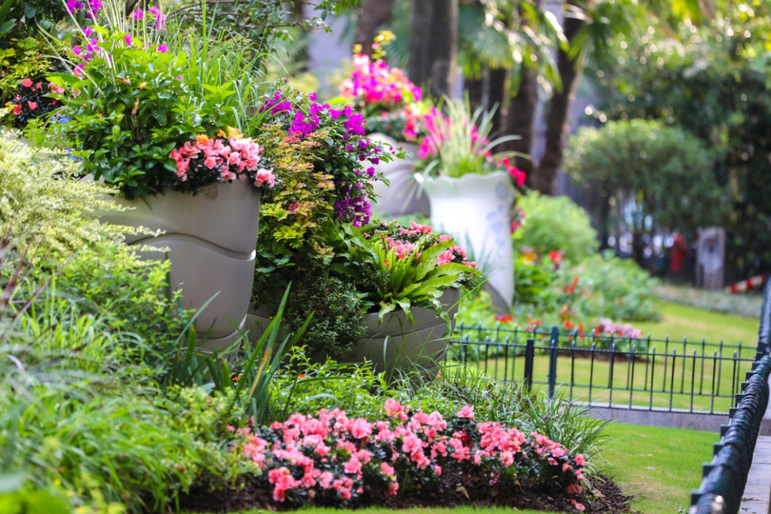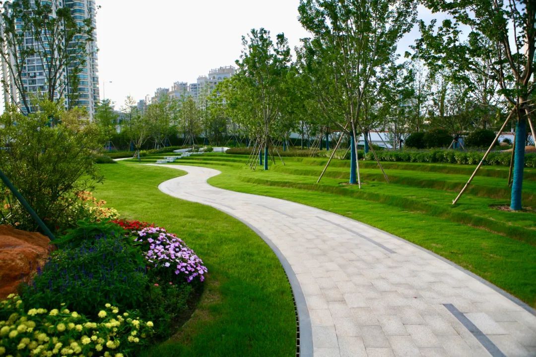 此外,在现有基础上提升了市民健身广场,搭配欧式凉亭和环抱长廊,并在自然式花丛花境中点缀艺术造型容器,根据季节在容器内搭配不同花材,为游人提供良好的步行体验。
