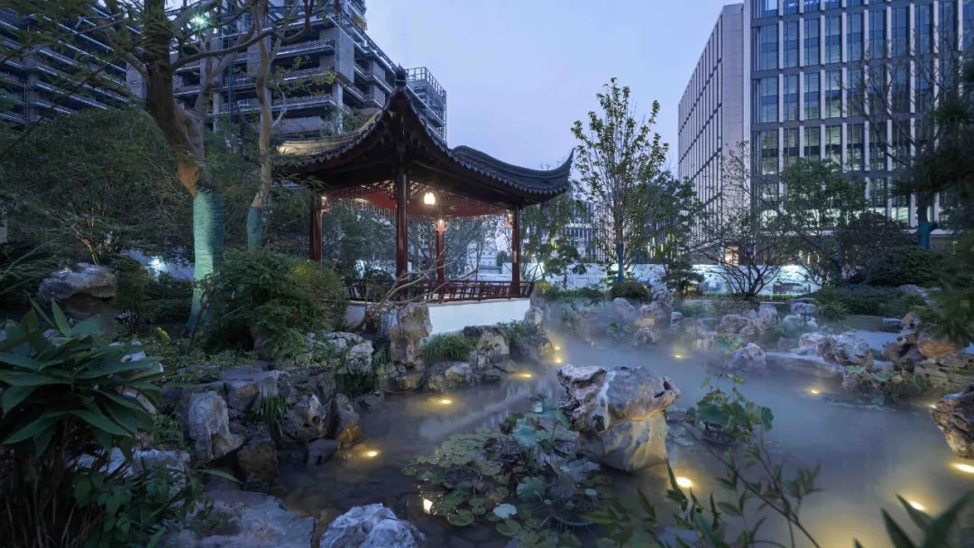 商船会馆花园位于董家渡会馆街38号,面积4716平方米。设计以江南文化精髓为基调,围绕商船会馆这一主体,在保留原有空间布局的同时,复原与重塑青墙黛瓦、亭台水榭、蜿蜒小径等中式元素,延伸历史文化脉络,使花园与会馆的建筑风格和历史底蕴高度匹配、相辅相成。