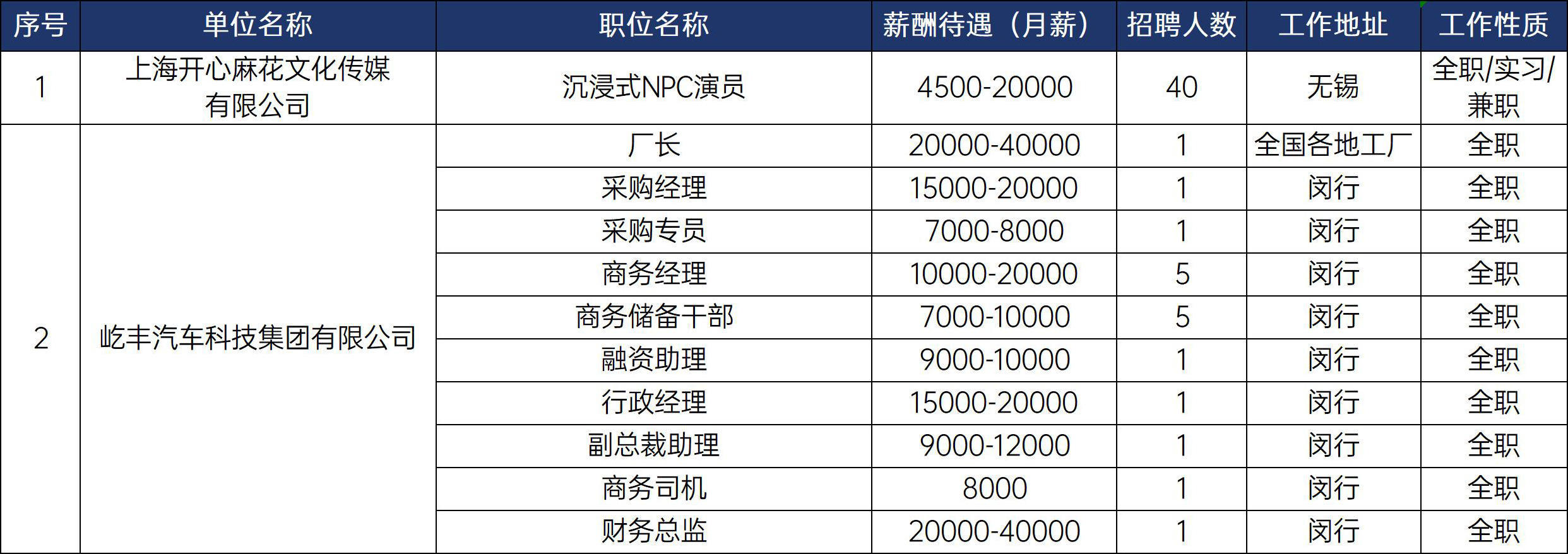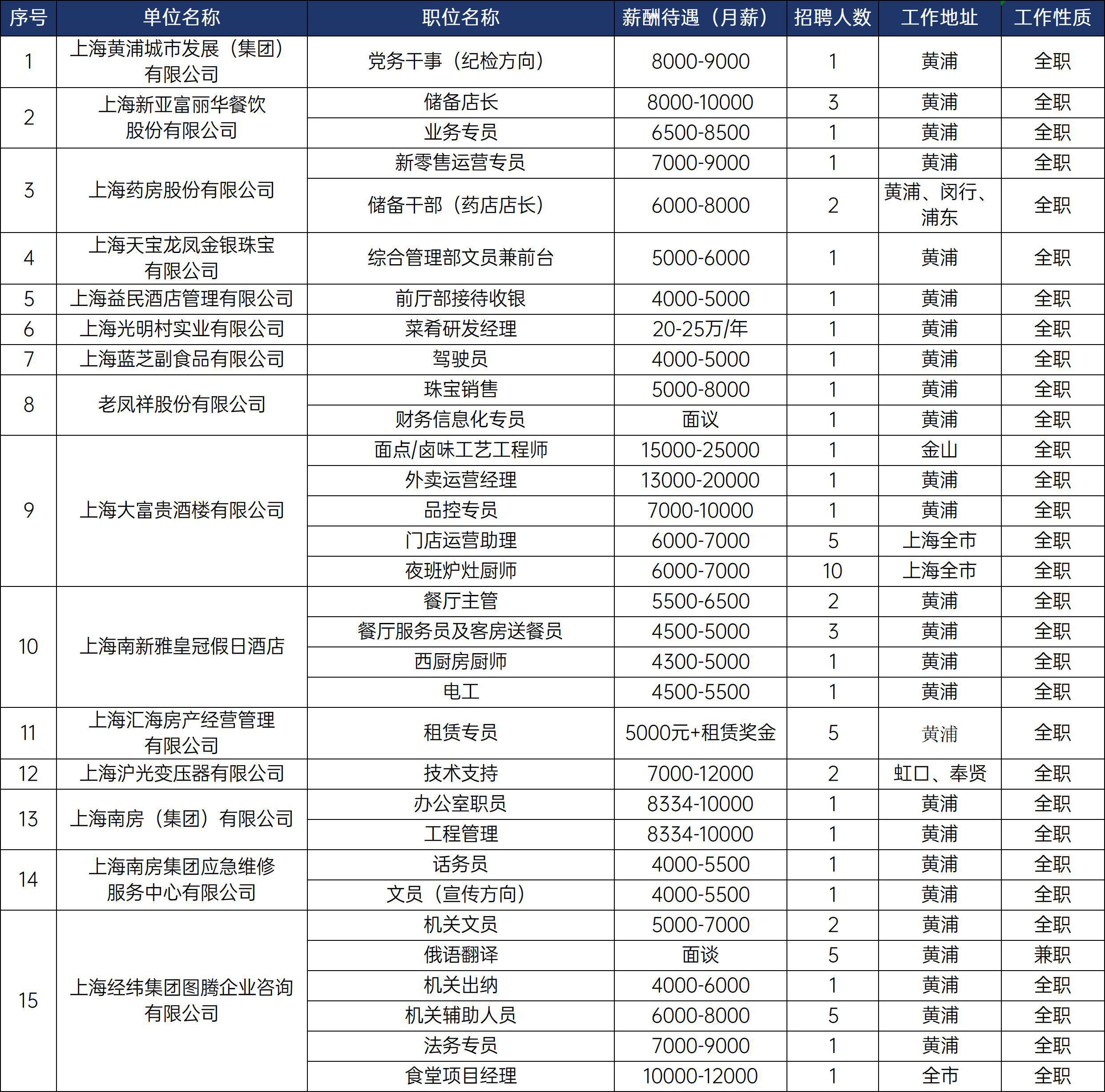 招聘会场:上海市黄浦区黄陂南路838弄中海环宇荟商场1F