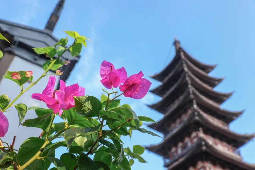 据了解,三角梅属于紫茉莉科叶子花属的木本植物,其花朵通常以三朵花呈三角形对称排列,因此得名“三角梅”。然而,三角梅的主要观赏特征并非花朵本身,而是由叶片演化而来的苞片,每组苞片由三片组成,质地如纸,色彩斑斓,赏心悦目。三角梅的花期较长,开花时花多于叶,很是壮观,为金秋的方塔园增添了一抹亮丽的色彩。