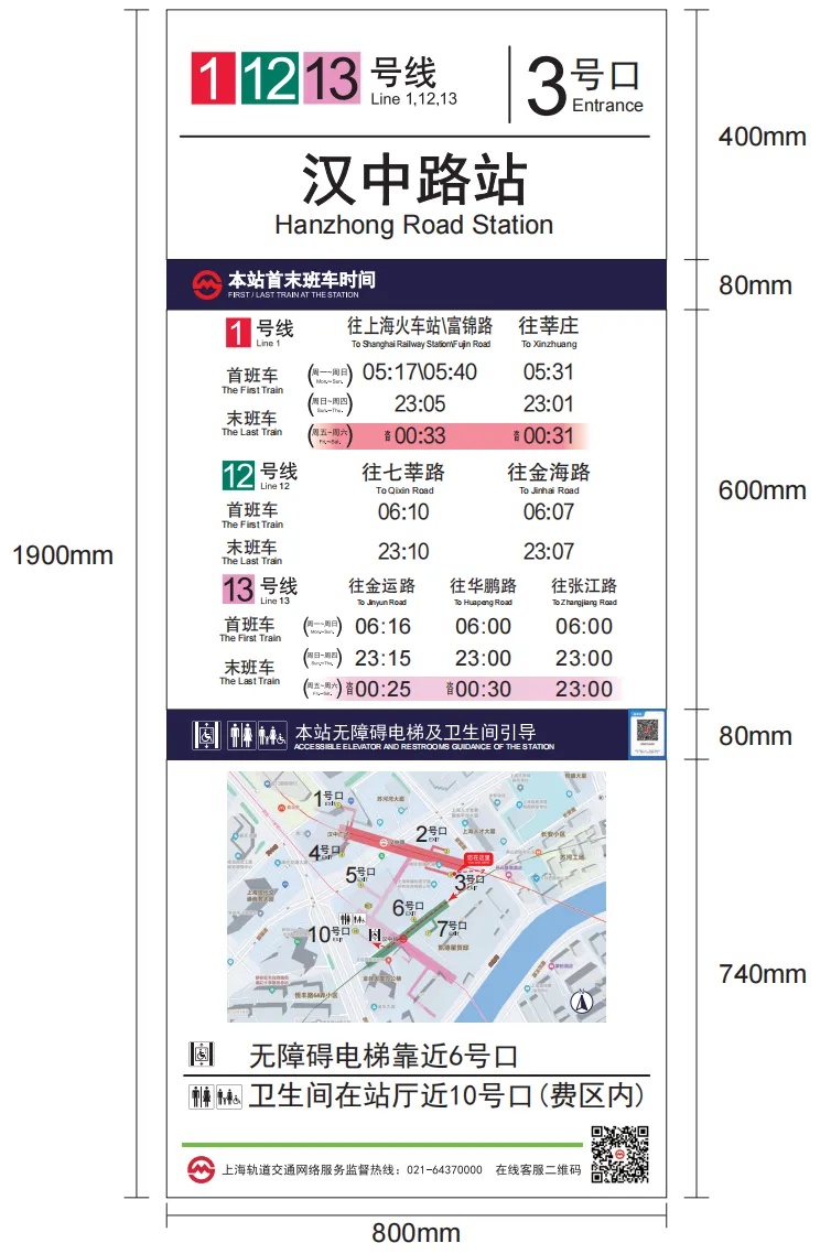 上海地铁始终把提升市民乘客的出行体验作为努力方向,坚持从乘客视角出发,不断优化运营服务品质,近日在汉中路站等多个车站出入口处试点新版综合服务信息牌,通过提供更精准、清晰的出行服务信息,以满足乘客多样化的出行需求。