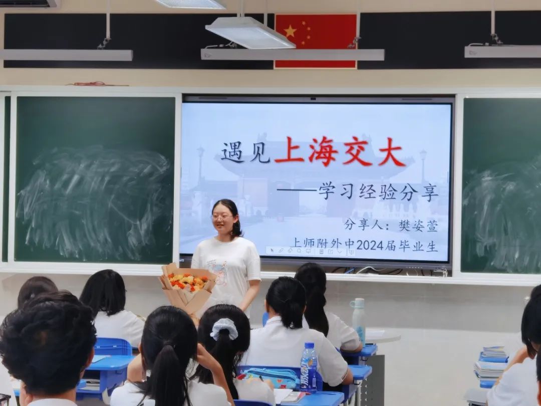 事实上,邀请优秀毕业生回校传授经验,也是上海师范大学附属外国语中学的老传统了。“3年前,学校里一位考上华东政法大学的学姐来跟我们讲大学生活、讲高中的学习,我今天站在这里,感觉真的很奇妙。”樊姿萱说。