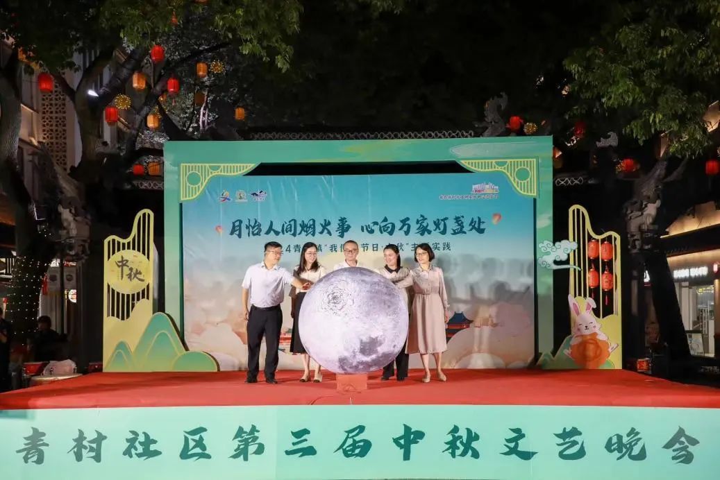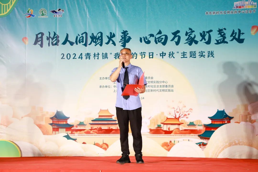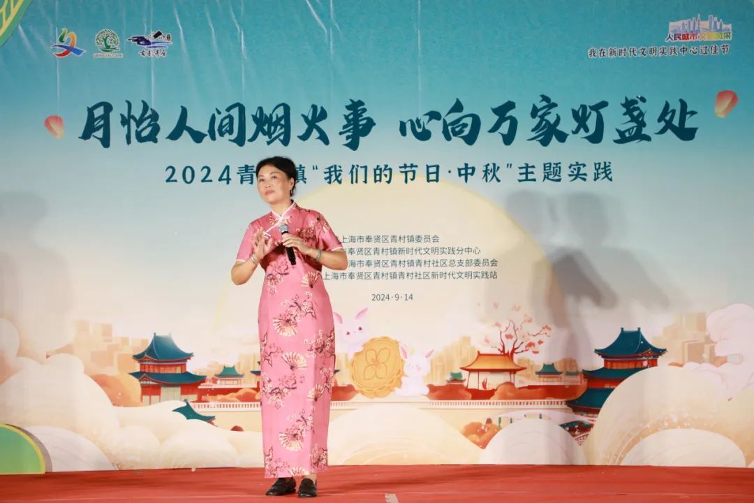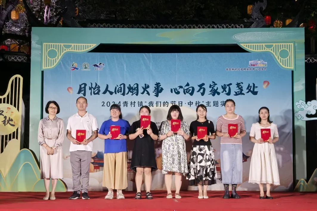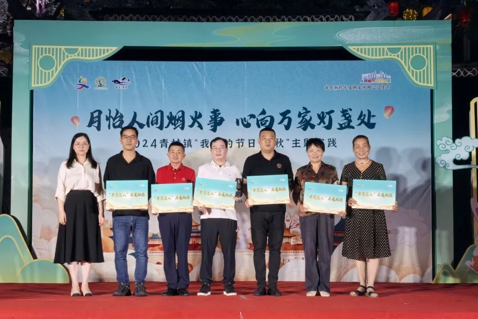 月怡人间烟火事 心向万家灯盏处 丹桂飘香又中秋,花好月圆人长久。中秋节作为中华民族的传统节日,承载着团圆、和谐、美好的寓意。为弘扬中华民族优秀传统文化,丰富居民精神文化需求,为他们提供更多的展示平台,积极展现社区团结、凝聚融合、和谐向上的良好风貌,9月14日晚,青村镇举办“仲秋梦华录”中秋主题晚会及游园活动,进一步推动青溪文化的传承与发展,提升青溪老街的文化影响力与社区的和谐氛围。 礼遇“青溪贤人” 生活中,总有一些人,用他们的坚持和努力在平凡岗位上做出不平凡的贡献。他们用自己的行动诠释了社会主义核心价值观,展现了新时代公民的良好形象,是我们学习的榜样。 “青溪贤人”代表: “全国五好家庭”、“全国最美家庭”代表杨永冰 “全国最美家庭”、“全国红十字志愿服务先进典型”、“上海市优秀志愿者”获得者吴进宝 “上海市工匠创新工作室”创建人、奉贤区“贤城工匠”、“滨海贤人”获得者陈伟 奉贤区“贤美榜样”、奉贤区“诚信之星”、青村镇青韵商户联盟负责人彭文兴 青村镇特色宣讲品牌《阿傅故事会》主讲人傅永辉 青村镇文化惠民品牌《“艺”见青溪“艺”起惠民》骨干、“桃韵文艺演出队”带头人吴惠芳 活动现场为“青溪贤人”代表 送上暖心关爱礼遇 “青溪好家长”颁奖仪式 父母是子女的首任教师,也是子女的终身教师;家庭是人生的第一课堂,也是终身的学堂。 自发布“青溪好家长”评选通知以来,青村镇各中小学、幼儿园积极响应,广大家长踊跃申报。经评审,共评出32名2024年青村镇“青溪好家长”。 活动现场为“青溪好家长”颁奖 “好家长”亲子表演 《常怀感恩之心,传承优良家风》 ·演讲 ·青溪·青村联合中学 ·郅阳、谭郅子 《我爱我家——家风颂》 ·朗诵 ·明德·青村联合小学 ·范晓叶、顾范轩 皓月当空花灯美,千门灯火映青溪。古往今来,人们素有在中秋月圆之夜,点亮彩灯,以祈求平安幸福的习俗。 活动现场,点亮“中秋之夜”主题月亮,让大家共同感受青溪水岸的璀璨花灯与洒满水乡的月色,用美景谱写一段团圆佳话。 MID-AUTUMN 中秋 佳节 FESTIVAL {社区邻里 才艺展示} 社区文艺能人齐聚一堂 用嘹亮的歌声、动人的舞姿 为居民群众献上了 一场精彩的视听盛宴 颁奖仪式 Mid-Autumn Festival ▲一等奖 ▲二等奖 ▲三等奖 “满船清梦压星河”月光音乐会 水灯许愿 MID-AUTUMN 中秋 佳节 FESTIVAL {古风集市 梦回宋境} 夜幕低垂,青溪巷摇身一变 一个个商铺摊位有序排列 摆满了琳琅满目的商品 璀璨灯火点亮了时光的缝隙 古韵与光影交织出宋代绮梦 常见中秋月 好时节,愿得年年 猜灯谜 | 赏圆月 | 吃月饼 灯火阑珊 人头攒动 漫步在古街巷道中 体验市井烟火气 投壶、漆扇、猜灯谜…… 玩得不亦乐乎 MID-AUTUMN 中秋 佳节 FESTIVAL {艺术街区 寻宝打卡} 打卡收集“青溪上河图” 拼图碎片 老街设有“四大名捕” NPC巡街并提供线索 集满成图后可兑换月饼 汉服走秀 汉服加身,步入这光影交错的老街 你就是那画中人 每一张快门都是穿越时空的留影 定格属于你的宋代风情 传统 佳节 明月高悬,金桂馥郁 抬眼皆春景,垂首已秋韵 人间良辰,邻里同庆 让我们在月光下 重拾那些被遗忘的习俗 让传统文化的种子 绽放出更加灿烂的花朵