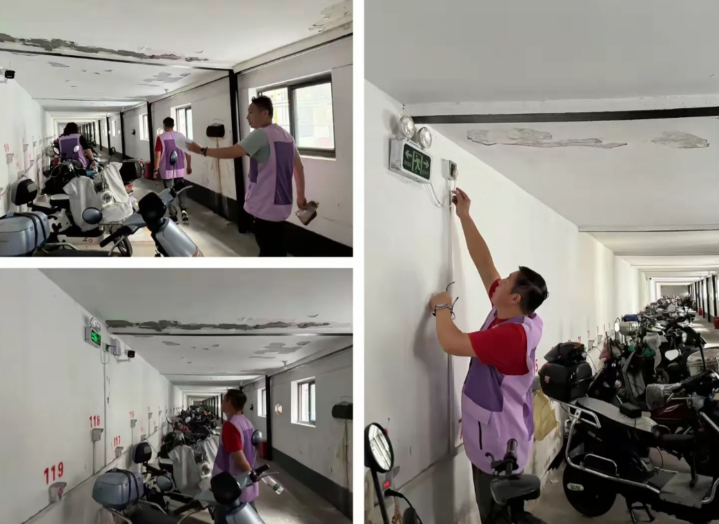消防器材是否配备完善、应急措施是否到位……丰镇居民区的居委干部与物业工作人员重点针对小区内的车库、加装电梯、门栋消防器材等区域进行了检查,并对小区内在阳台上有养花的居民进行台风安全宣传提醒,以防安全隐患,力求营造安全、有序的居住环境。