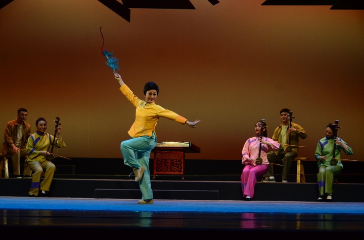 袁连成:为了进一步发挥和展示“双梅同台”的表演特色,我有意识地写了一场“回娘家”的戏中戏,在这一折中,既有淮海戏传统的、经典的程式表演,又有洋溢着现代气息的生活魅力,两位梅花奖演员的唱腔和表演,快似流水,缓似行云,显示出地方戏曲在演、唱合一的难度与高度。