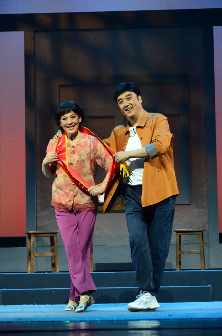 袁连成:为了打造一部淮海戏现实题材力作,我在创作之初,就提出了“双梅同台”的构想,即让淮海戏两位梅花奖得主许亚玲、魏佳宁联袂演出,这两位梅花奖演员都以表演见长,都善于塑造和刻画生活中的小人物,尤其在表现与再现之间拿捏准确,游刃有余;在剧中许亚玲扮演的“板凳姐”,静若处子,动如脱兔,嬉笑怒骂皆是戏,她将戏曲行当中的青衣和彩旦融于一体,在舞台上塑造了一个活色生香的淮海戏现实题材新的人物形象;魏佳宁扮演的“柴富”,既有企业家的商,又有庄户人的土,同时商中有土,土中有商,在商与土的双线下,又渗透出农村人质朴的情感……中国戏曲的原始状态就是角儿的艺术,当下的地方戏和基层院团亦是如此,为角儿写戏,让角儿站到台中,用角儿推动和带动地方戏剧种,是我这些年戏曲创作的不变追求;同时,《板凳姐上任》集结了淮海戏优秀中年演员周雪芹、庄雄师和刘勇,以及优秀青年演员马洁等,使这部戏亮点纷呈,各自精彩。