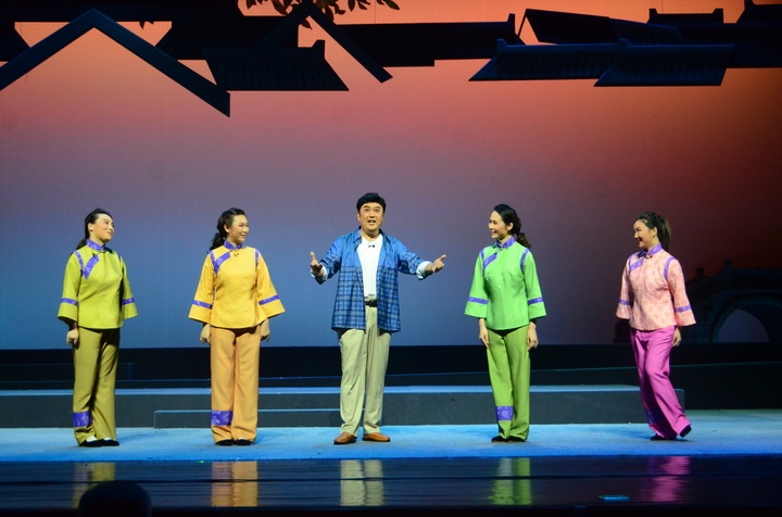 袁连成:大型现代淮海戏《板凳姐上任》,是一部原创农村题材现代戏,它讲述了苏北泗水河畔泗水村的农民们,脱贫了、致富了,生活却更加闹心了,村里的高价彩礼、人情攀比、赌博、厚葬薄养,诚信丢失等问题愈演愈烈,镇宣传干事板凳姐,在村里成立了以苏北琴书为载体的“小板凳乡风文明评议会”,月光下、庭院里,古老的苏北琴书一次次唱响了现代文明之歌,以文暖人,以文润心,彰显了在乡村振兴大潮中的文化自信!