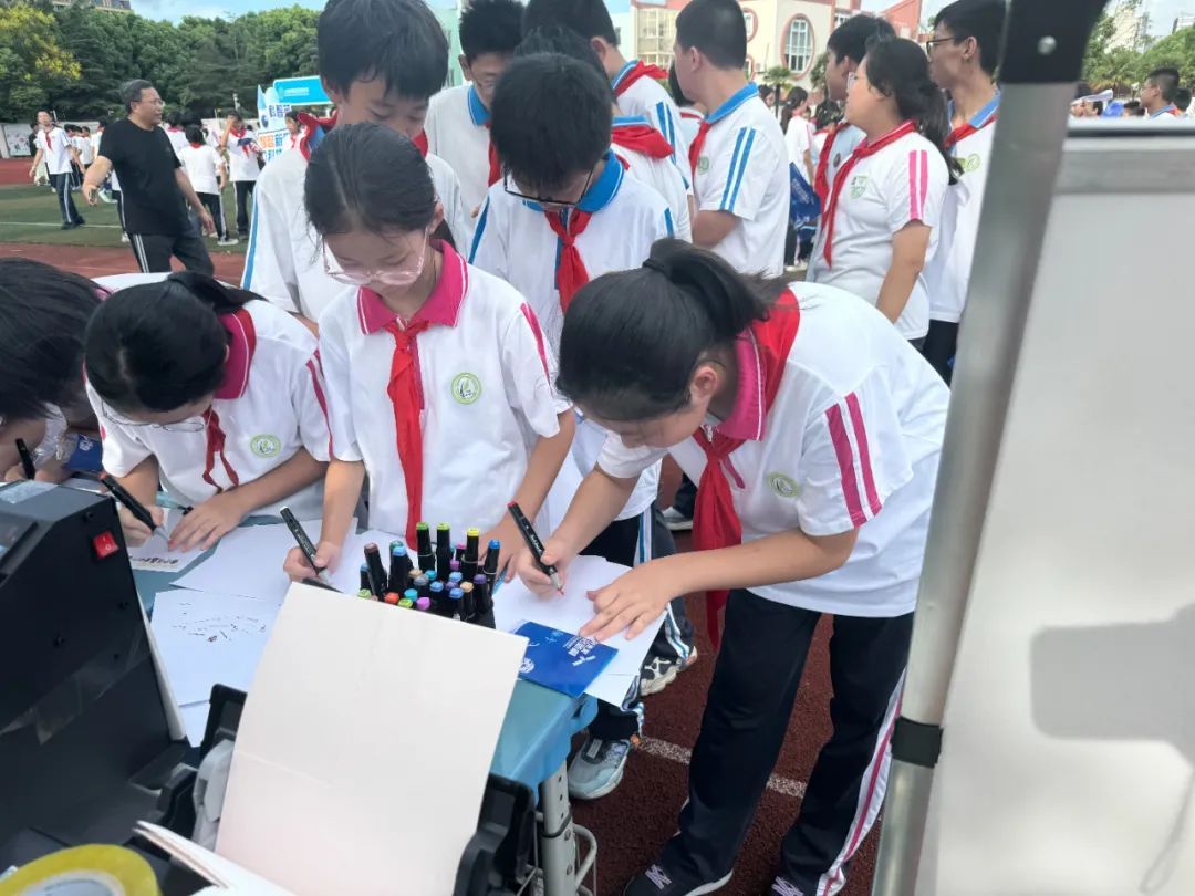 在徽章制作摊位前,学生们充分发挥想象力,用彩笔在白纸上绘出自己的梦想与祝福,再用机器压制成一个个徽章。“我在徽章上写了‘锦鲤转运’,祝愿我的成绩越来越好!”南苑中学学生陈钰涵说。