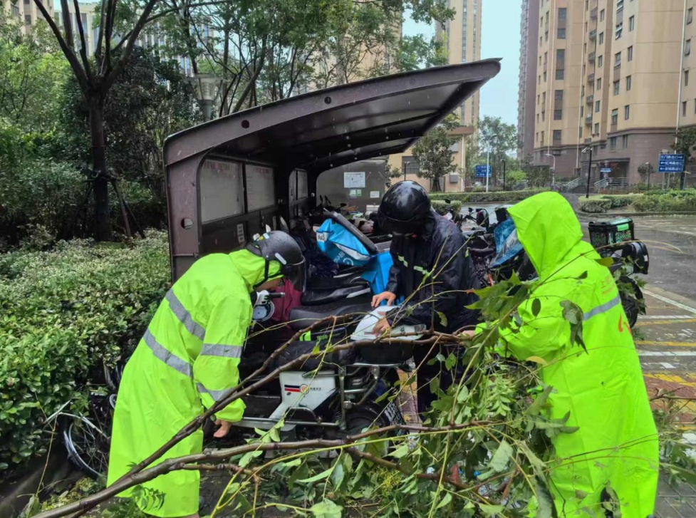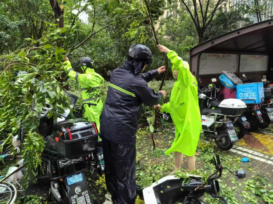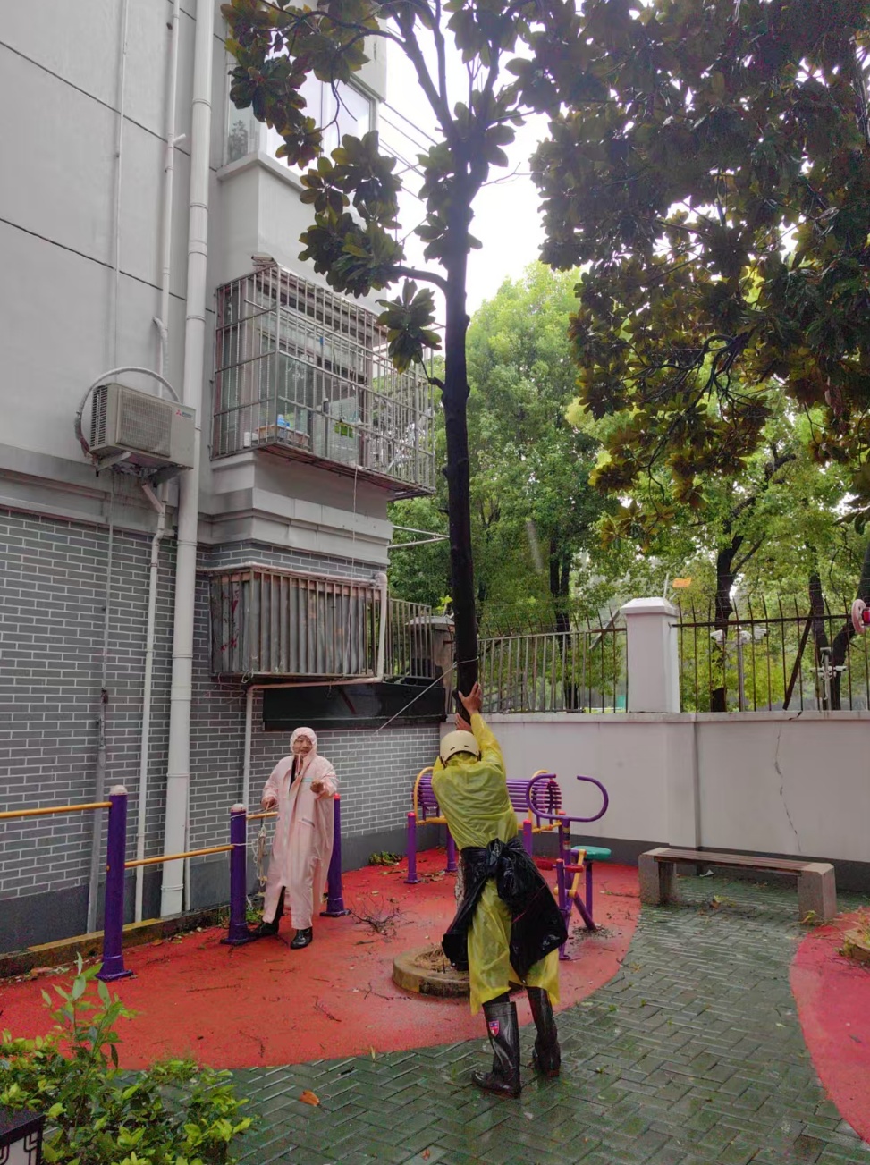 台风来袭,小区里平时枝繁叶茂的大树,在狂风中树枝被吹断落下的现象时有发生。在这个台风天的社区里有这样一群人,他们在值守中第一时间发现各种居民身边的险情,并默默守护社区的安全。