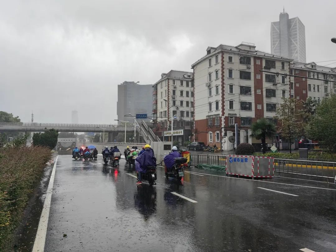 今天清晨,在大连路隧道入口,虹口交警采取了一系列措施来护送非机动车进入大连路隧道。他们引导非机动车驾驶者前往指定的安全通道。同时,交警们身着醒目的反光雨衣,手持指挥棒,站在风雨中指挥交通,确保车辆有序排队等待进入隧道。