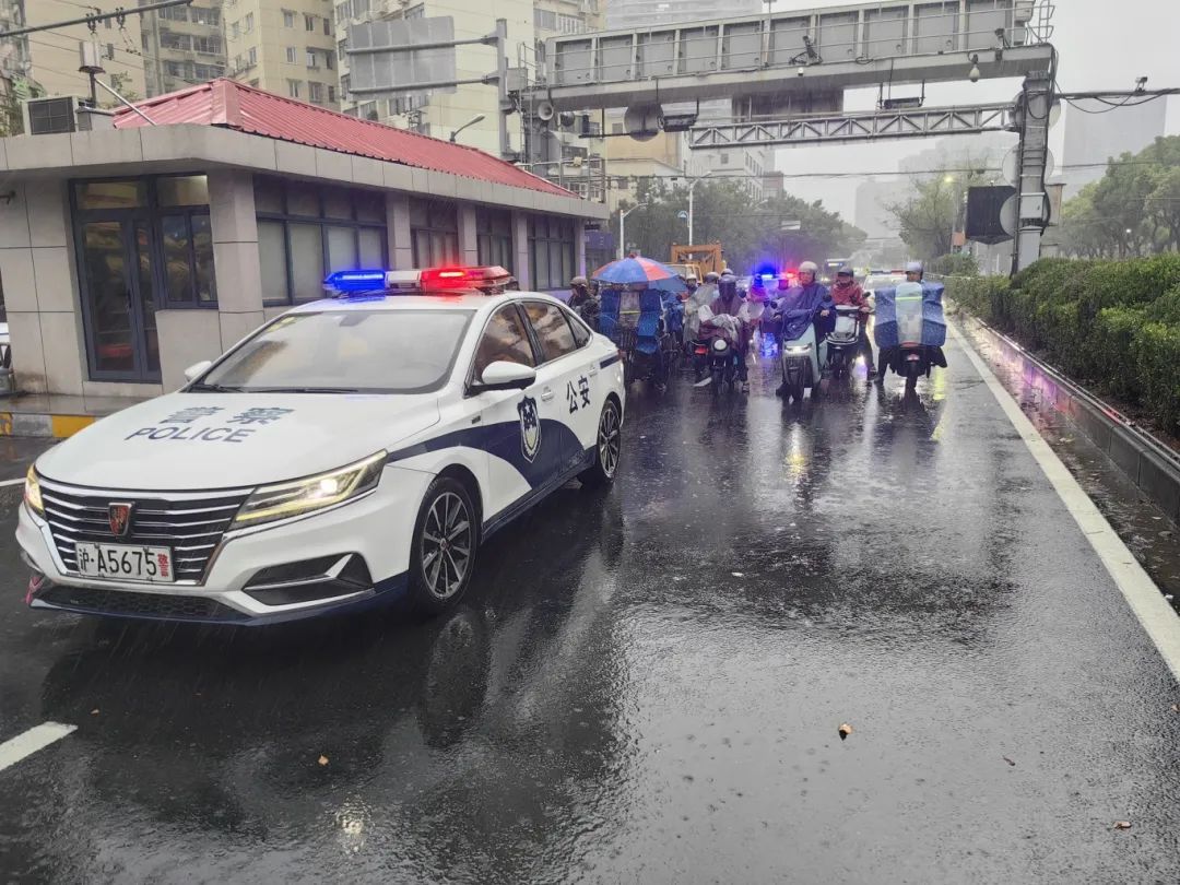在隧道内部,交警们还要面对积水、风速增大等挑战。他们小心翼翼地引导非机动车驾驶者通行,虹口交警们用手势和灯光指示驾驶者减速慢行,确保安全。