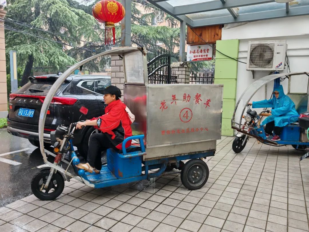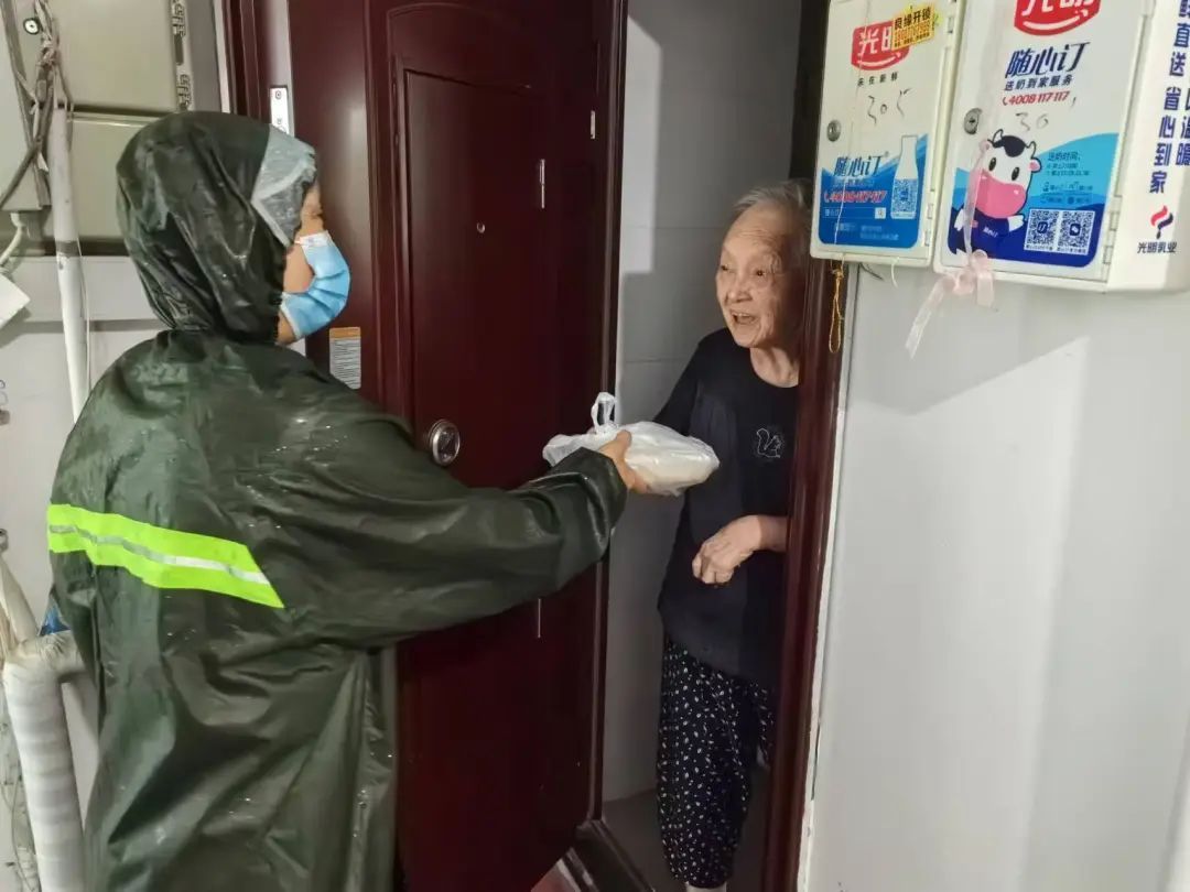 台风“贝碧嘉”成为1949年以来登陆上海的最强台风,面对严峻的天气形势,线上外卖平台也于9月15号晚上22点暂停配送服务,但曹杨新村街道的助餐服务并没有因此中断,社区长者食堂照常开放,而梅岭南社区食堂也持续为辖区内需要帮助的老年人提供送餐服务。