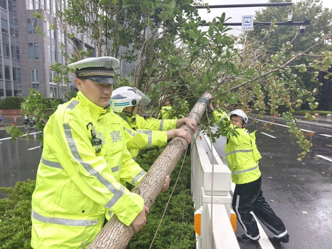 9月16日,台风“贝碧嘉”登陆上海。受台风影响,普陀区境内从昨晚起持续出现强风暴雨,导致多处大树倒伏、路政设施倾倒,阻碍道路交通。普陀公安根据应急预案迅速启动防汛防台措施,及时处置各类安全隐患,全力筑起抵御台风的“结界”。