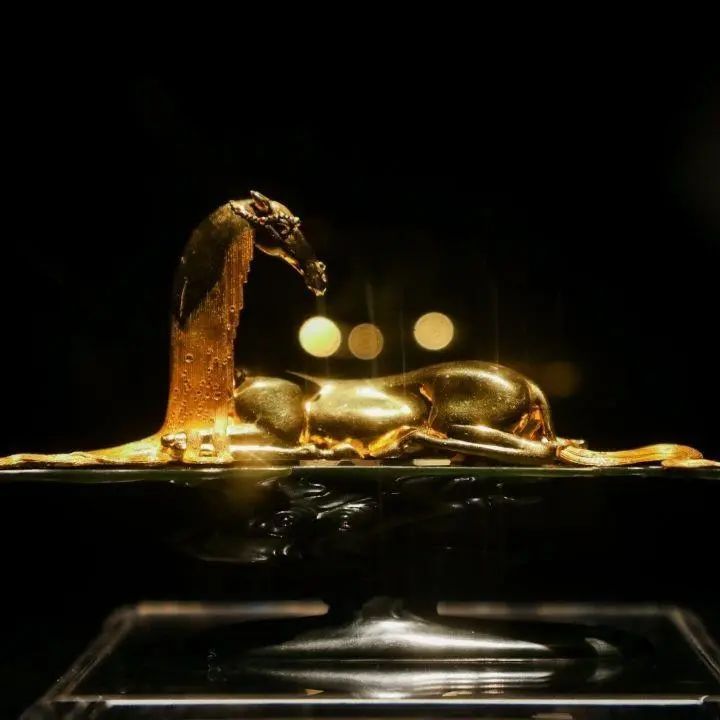 值得一提的是,作为策展人之一,艺术大师邱启敬带来了自己的“观山海系列”和“观自在系列”作品。“观山海系列”的作品“吉量”与“龙神”,灵感来源于《山海经》中的神话故事。再现东方古老传说与黄金艺术的奇妙融合。
