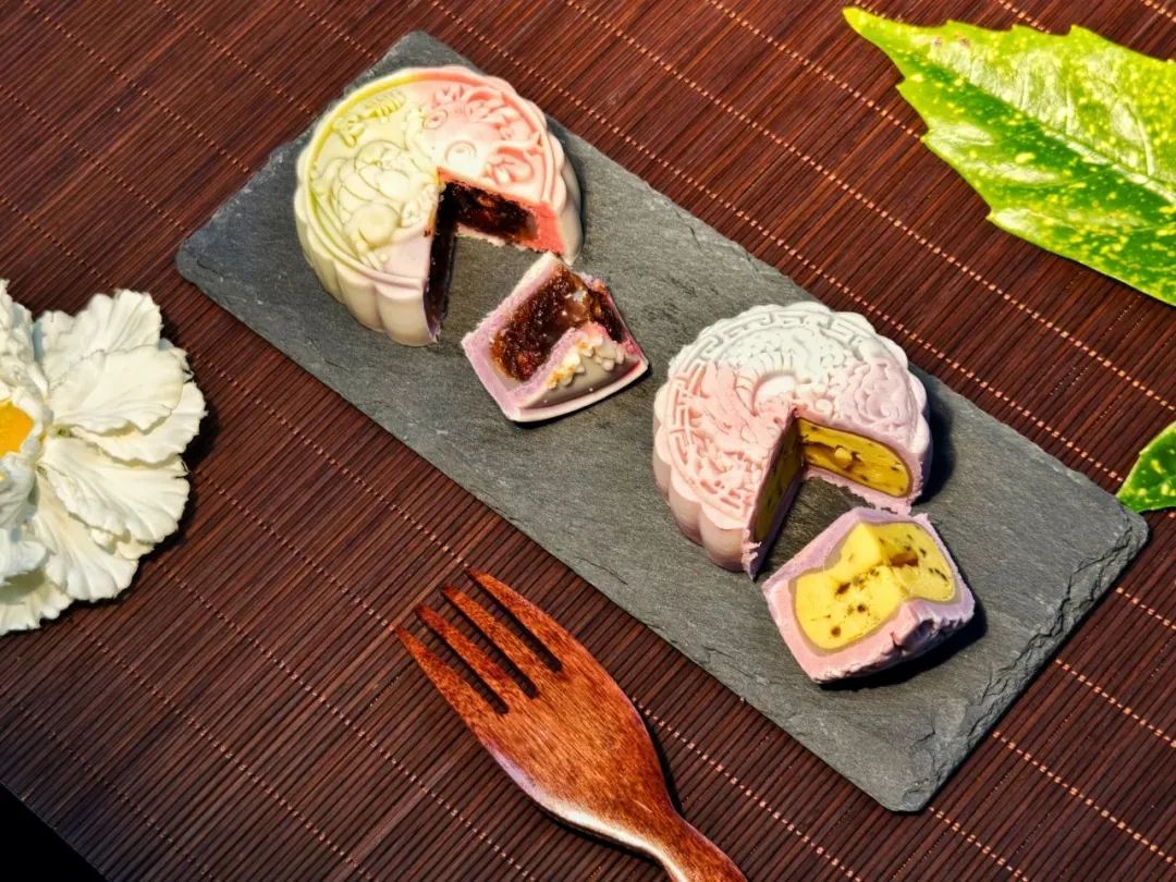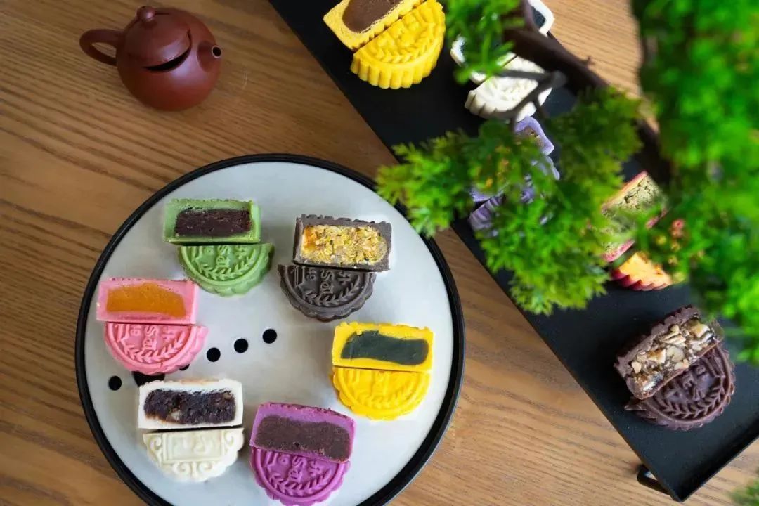 轻乳铁观音月饼、生椰拿铁咖啡流心月饼、红酒蔓越莓流心月饼……今年,上海对外经贸大学的月饼在外观上延续了校徽雕刻,除了五仁、豆沙、椒盐、椰蓉、凤梨、蛋黄莲蓉等经典口味,还别出心裁地推出雪耳玫瑰、牛油果核桃、黑米秋耳、奶油凤梨等独具特色的新口味流心月饼,皮薄如纸,馅料绵滑,口感细腻。
