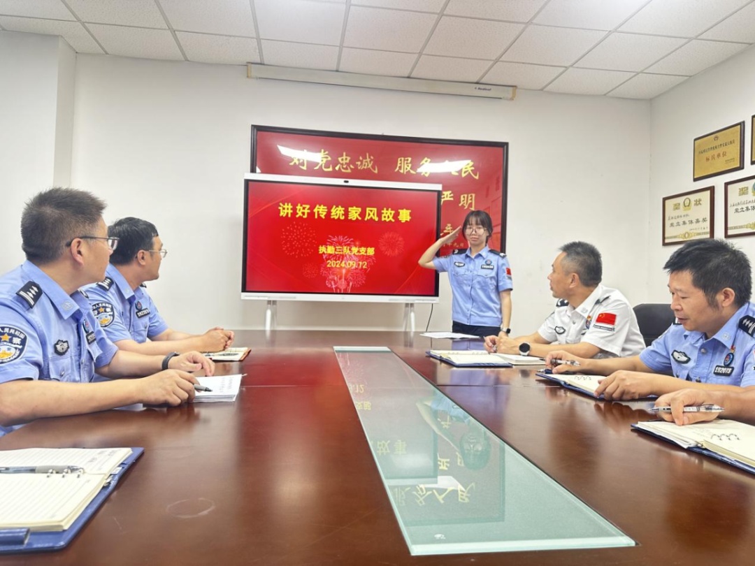 抒“廉”意,玉壶丹心。该站以廉洁教育主题活动为抓手,组织开展“中秋话家风 传承好家训”活动,大家结合自身经历,纷纷讲述传统家风故事、分享经典家训家规,并通过发放“清风传家 廉洁致远”倡议书,号召家属一起加强对民警的日常监督和纪律提醒,积极营造家廉我荣、崇俭尚廉的良好家庭氛围。同时,该站依托“纪法周周学”警示教育平台,通过播放《廉洁过中秋》《淞检业话—网络安全篇》等4部宣传教育片,警示提醒大家牢记节点即是“考点”,节关也是“廉关”,只有系好廉洁的“安全带”,才能过一个团圆欢乐、廉洁祥和的节日。