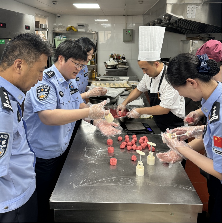 品“廉”味,巧手正心。该站以传统中秋佳节为媒,开展“廉心润中秋”月饼制作活动,大家齐聚一堂,摩拳擦掌,以莲蓉为馅,以“莲”喻“廉”,将廉洁元素融入月饼之中。值得一提的是,该站执勤二队支部书记是师从沪上篆刻名家吴顺人的“雕刻大师”,这次,也特别邀请他设计、制作篆刻体“清风吴淞”的品牌LOGO,模刻在大家亲手制作的手工月饼上。这些月饼将用以慰问在节日期间坚守岗位、默默付出的一线民警,搭配上独具特色的廉洁卡片,在凝聚警心、激励斗志的同时,也营造了浓厚的风清气正的节日氛围。