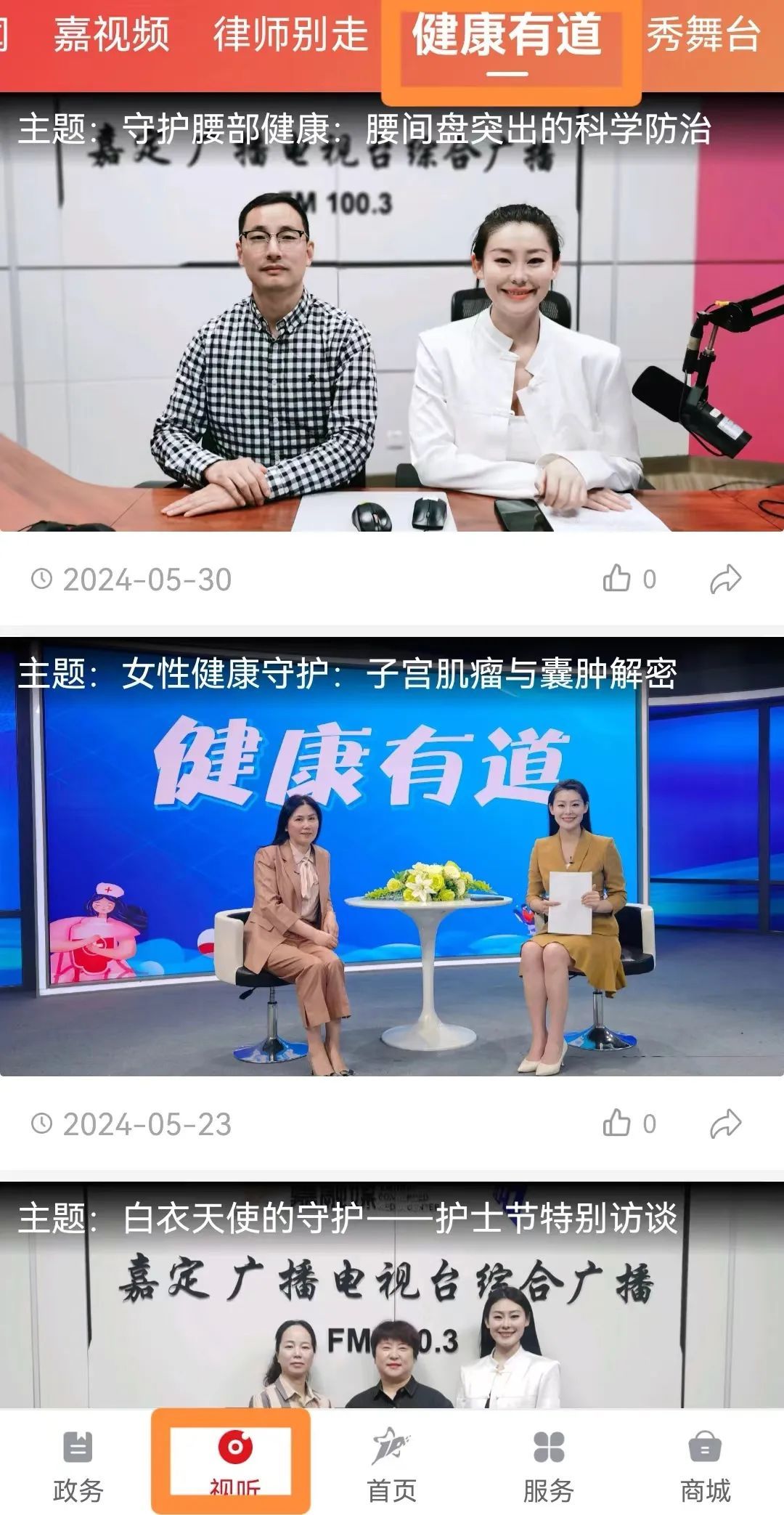 点击“视听”按钮找到“健康有道”,