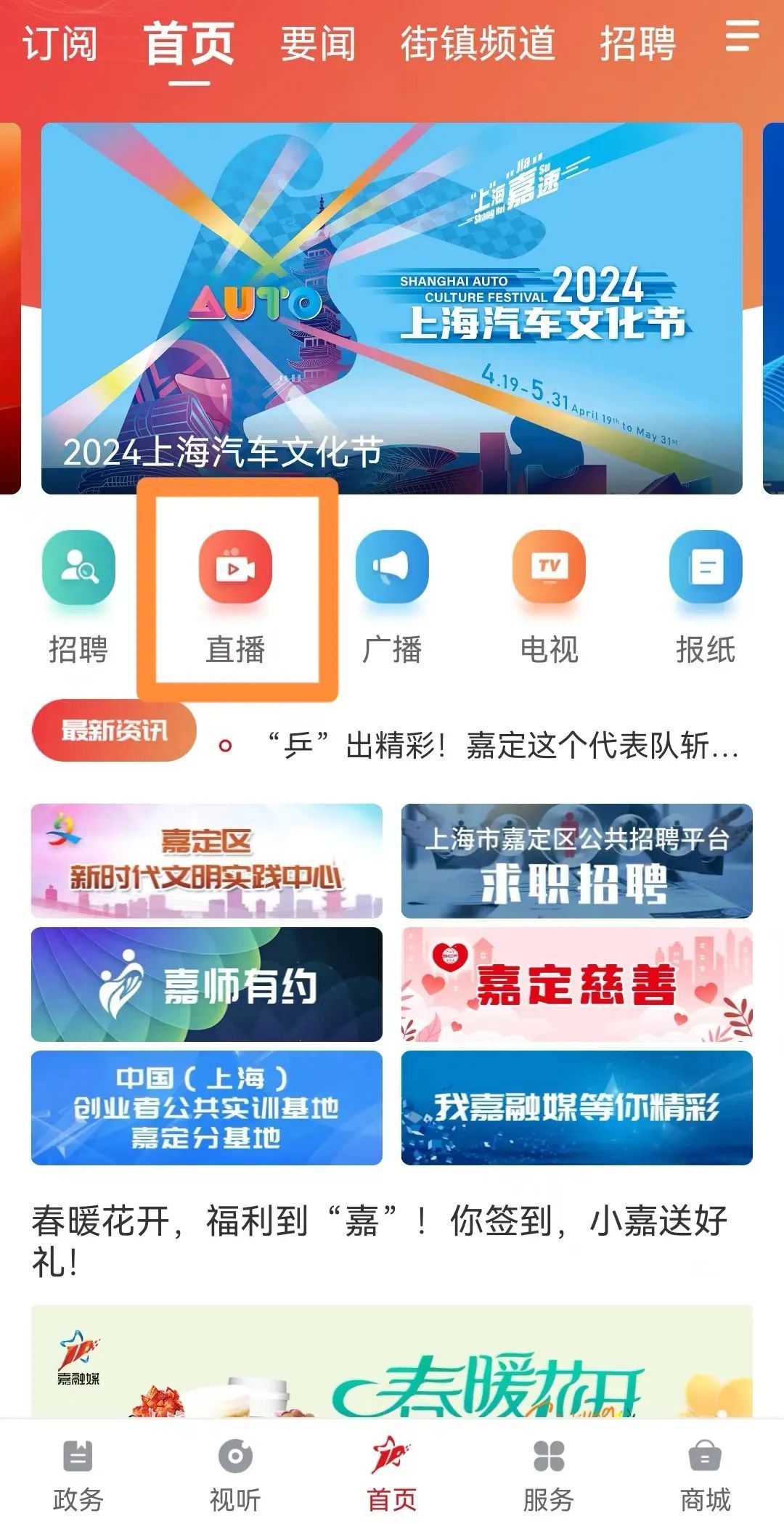 在“上海嘉定”APP首页中,