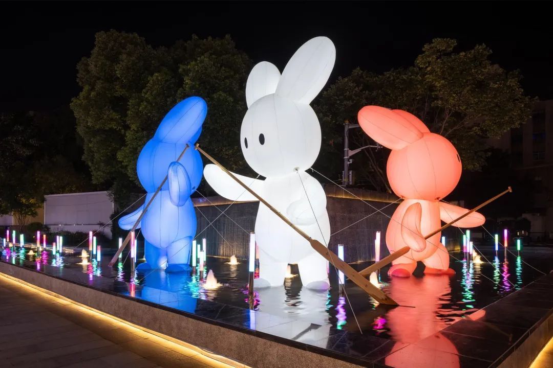 自9月2日“弄月·中西”海派中秋灯会亮灯以来,8组名为百舸争月、筑梦凝月、浮生闲月、震世探月、创世启月、探弄窥月、弄里抱月、琼楼眺月的巨型花样萌兔装置争相“跃”入滨港商业中心今潮8弄,百年弄堂以“天涯共月”为引,化作“中西对话”的浪漫之境。千姿百态的萌兔花灯吸引市民游客与外国友人纷至沓来,迅速赢得“上海萌力四射的兔兔灯会”、“既新潮又充满节日氛围感”等赞誉。而就在前几日,“震世探月”兔隆重登场,完成了今潮8弄今年海派中秋灯会的最后一块拼图,该装置以象征手法,情境化地再现了2024年嫦娥六号在月球背面成功探测的壮举,让观者也得以重温这一具有里程碑意义的事件,感受中国探月工程的非凡成就与民族自豪感。