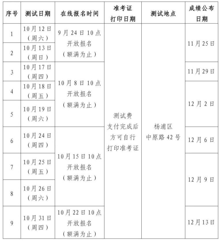 2024年10月普通话水平测试报名即将开始,测试安排公告如下: