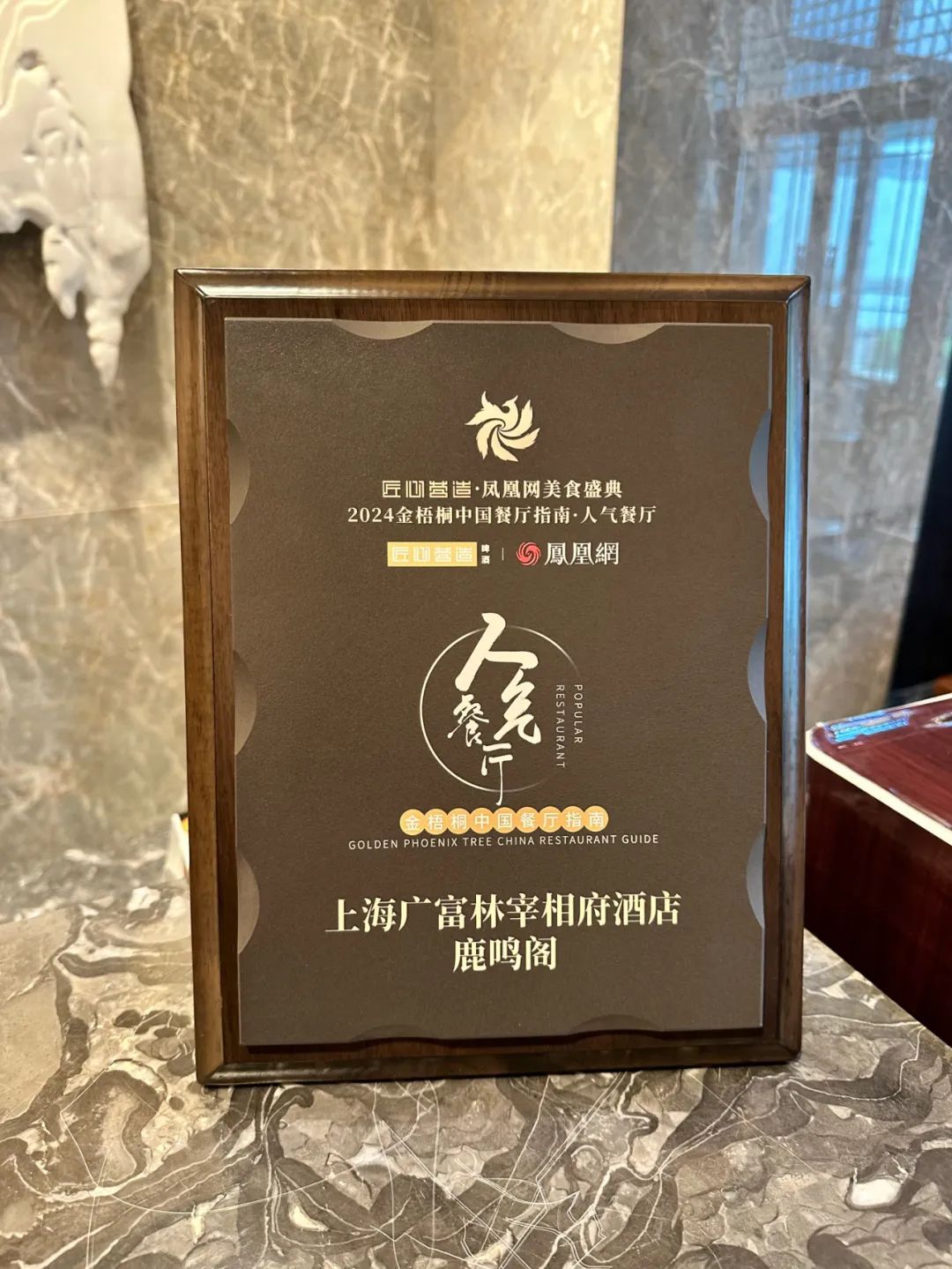 近日,匠心营造•凤凰网美食盛典暨2024金梧桐中国餐厅指南南部人气餐厅颁奖,位于松江的上海广富林宰相府酒店•鹿鸣阁脱颖而出,首次登上“2024金梧桐中国餐厅指南•南部人气餐厅”榜单。
