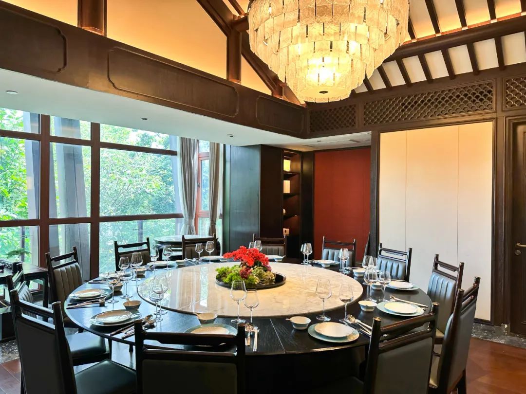 广富林宰相府酒店•鹿鸣阁共有大小31个包厢,可容纳380名客人同时用餐,主要提供高档海鲜、精致本帮菜和粤菜,推杯碰盏间尽揽广富林美景。