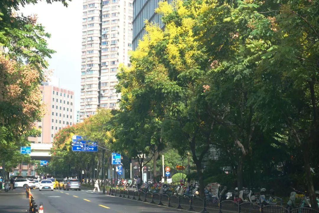 栾树作为上海优质的观赏乔木,在城市道路绿化中的应用效果较好,在这些街头同样可以目睹秋日“黄金雨”的浪漫哦~