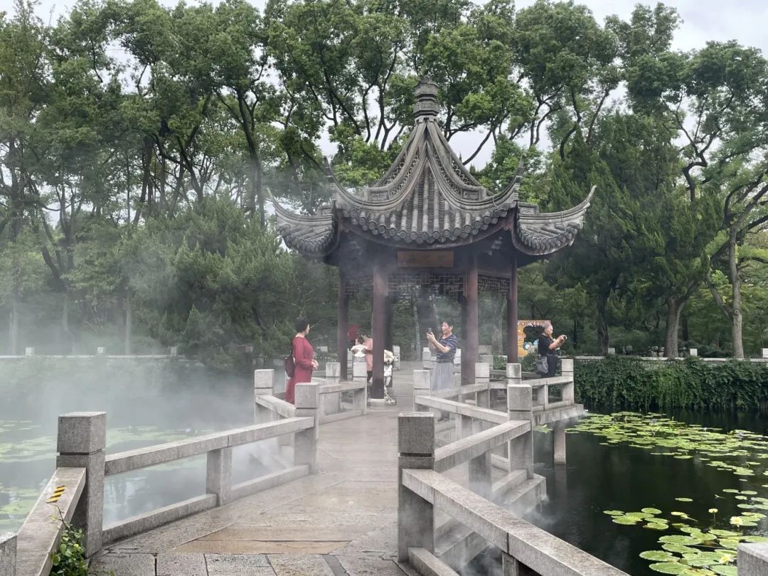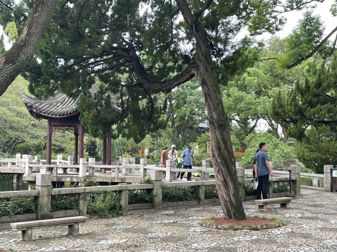 9月19日是活动首日,上午9点,虽然天气阴沉,但仍有不少游客来古猗园游园观赏,一边赏景,一边闲聊,感受雨中古猗园的别样雅趣。