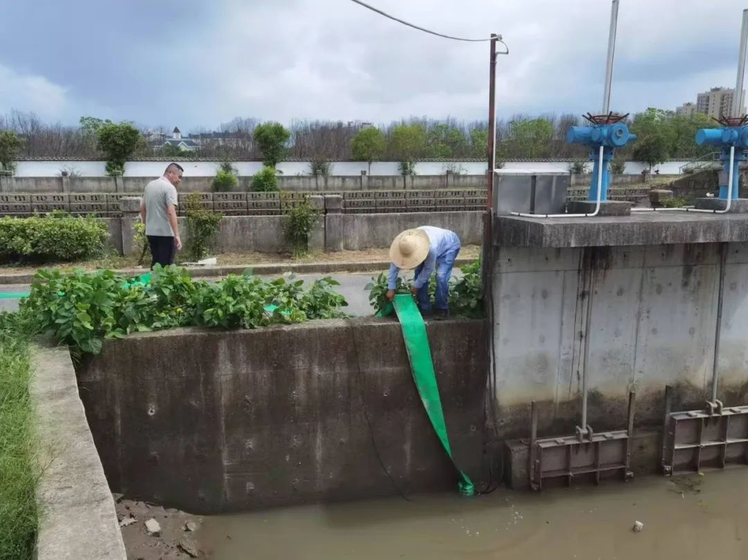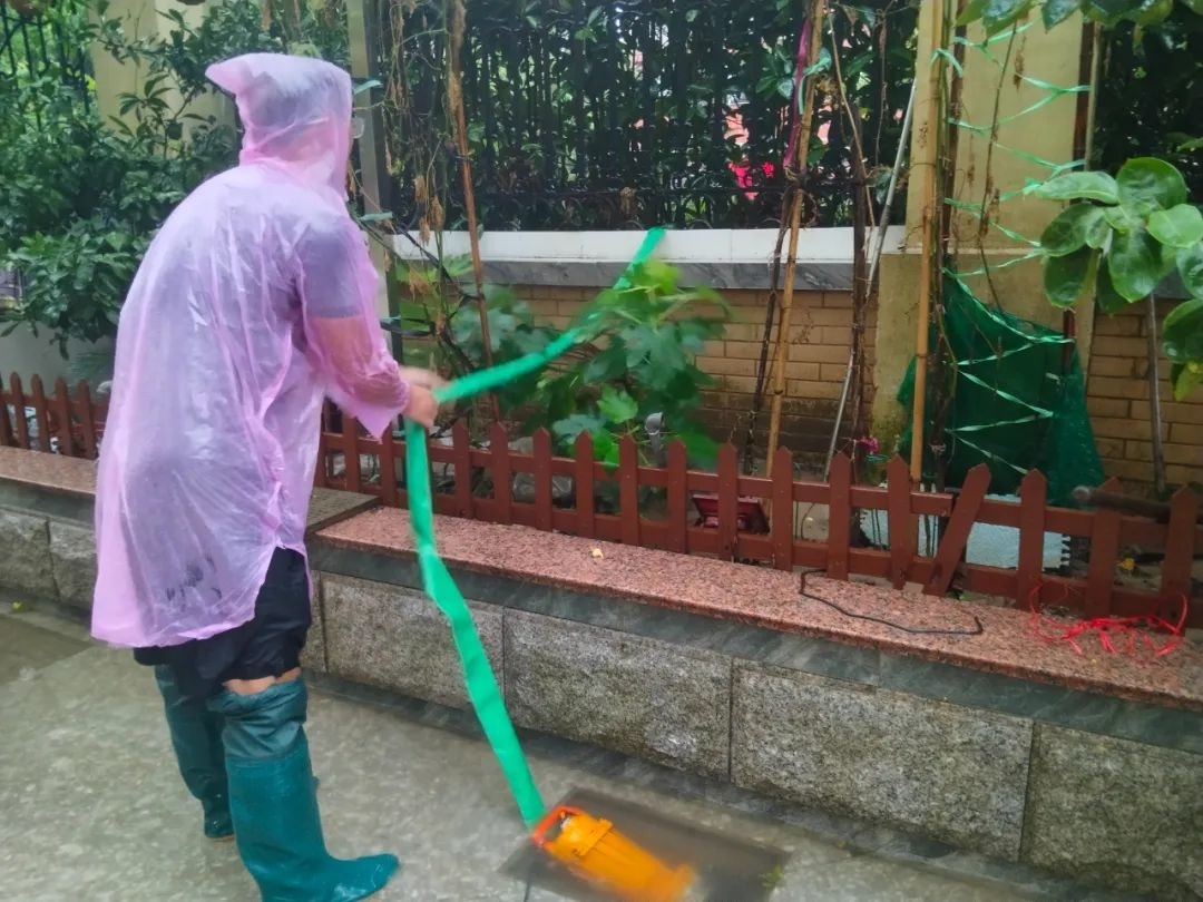 早上7点多,在龙湾别墅小区,因水位高,物业人员及时协助用水泵帮助居民抽水。金海岸小区出现积水,物业极力疏通排水,确保居民正常生活不受影响。在山阳镇工业园区,一厂区内积水比较严重,相关部门通知企业停产断电,并及时组织企业疏通排水口。