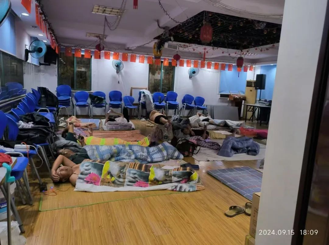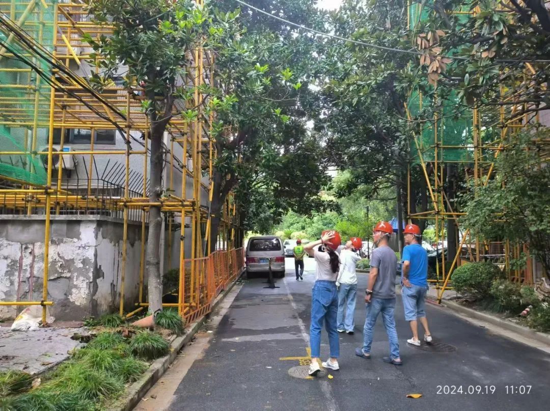 现场排查 近日,华梅花苑党总支、业委会、物业、“美丽家园”办、监理方、施工方等紧急召开专题会,研究商讨应急预案,成立防台防汛专班小组,在台风期间进行24小时值班值守。 各方从水、电、绿化、停车、高空、小区外墙等方面开展了全覆盖安全大排查,合力消除安全隐患,并重点对“美丽家园”施工中可能产生防台防汛的安全隐患如搭建的脚手架、施工材料的堆放、小区雨水排水管、活动板房、小区外供居民临时停车场地等逐一进行全方位排查与处置。 如何保障住在工棚内的施工人员的安全?居委会把他们紧急安置到小区党群服务中心内,共为84人次施工人员提供台风期间的一日三餐及日常生活所需,并安排专人现场24小时值班值守,遇到突发问题及时沟通并处理。 同时,居委会充分发挥小区“美丽家园”宣传组志愿者作用,通过喇叭、宣传栏、电话、面对面、楼组长群、楼组群、业主群等线下线上方式广泛向居民传递台风实况及防台防汛小知识,提醒居民及时收回摆放在室外的花盆等堆物,自查空调外机、雨棚等情况,不断增强居民防范意识,提高思想重视。 社区重点关注孤老、高龄、独居老人等特殊人群,除“一对一”宣传让他们知晓台风相关信息及防范贴士外,还安排结对志愿者、楼组长、楼内党员等关注重点人群动态,及时为有需要的居民提供帮助。
