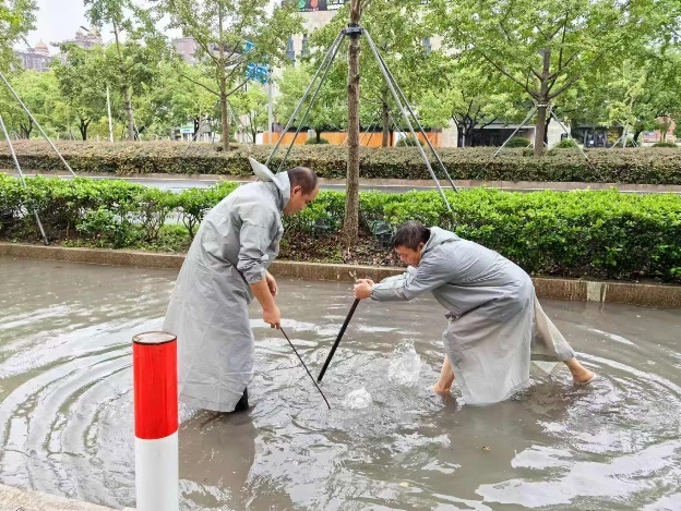 此次台风带来的强降雨,区房屋管理局、街镇房管部门和物业服务企业各方齐心协力,以无畏的勇气和高效的行动,成功战胜积水难题,为居民的正常生活和出行安全筑起坚固的防线。