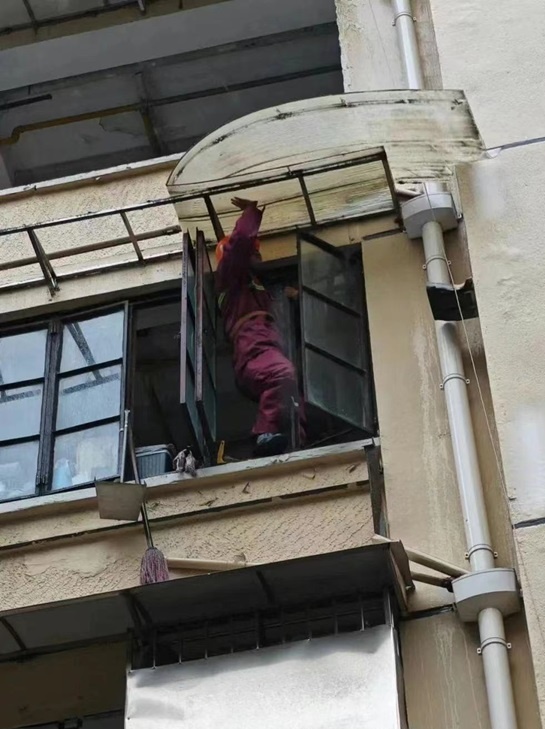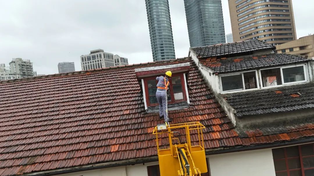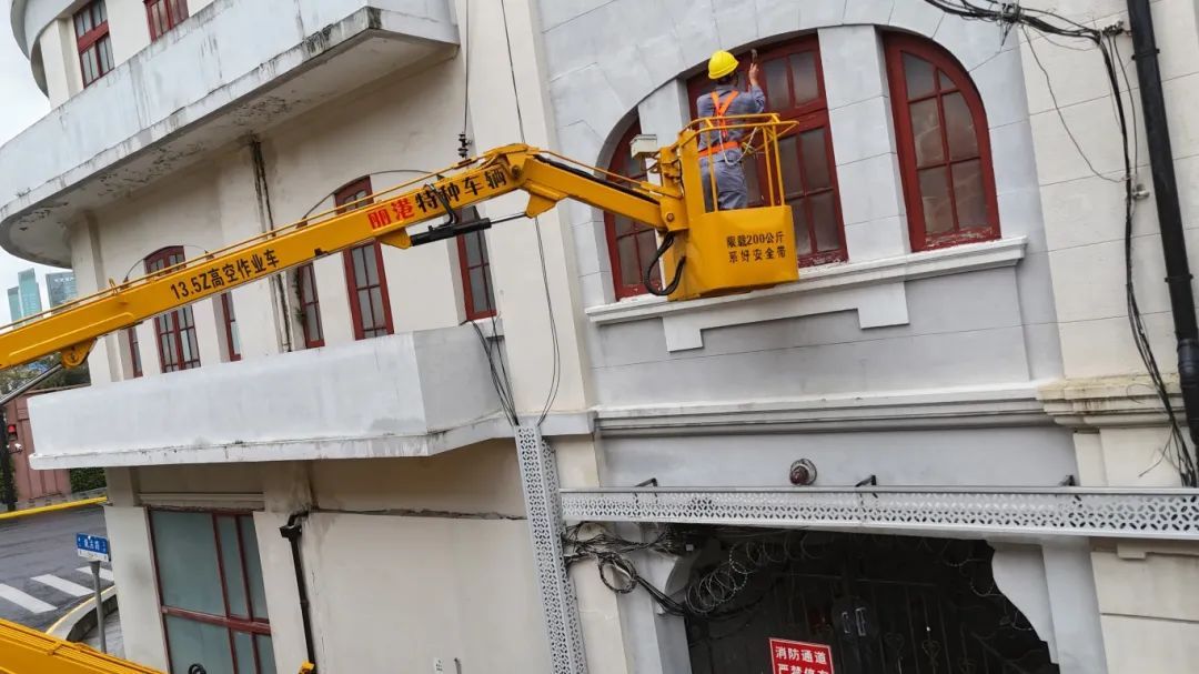 在山寿里,部分沿街房屋二层窗户未关闭,由于底层大门封闭,无法进入。虹房集团接报后,立即部署基地看守单位虹建公司与集团安全部门联动处置,派出登高作业车至现场进行排险作业,并对受台风影响存在隐患的房屋屋面一并处理。通过全体人员的共同努力,成功消除了安全隐患。