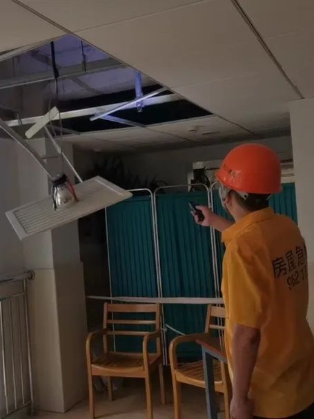 加固吊顶脱落处,拆除破损的雨棚