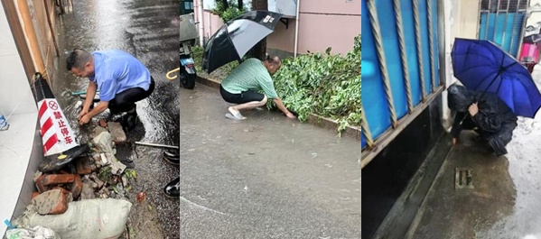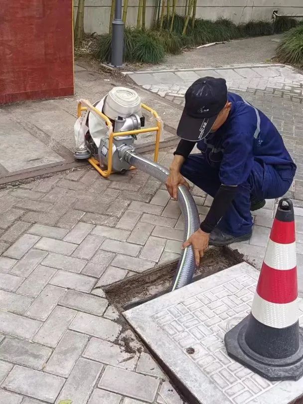 浦江镇浦航新城小区路面积水,在管物业服务企业上海园外物业集团有限公司第一时间赶到现场,全力清除堵塞进水口的垃圾、杂物,打开井盖加快退水。梅陇镇华唐苑小区积水深度达 5 厘米以上。区房屋应急维修中心接报后,根据指令立即派出应急队伍赶赴现场,安排抢险泵车、抽水泵,清理雨水口等加快退水速度。