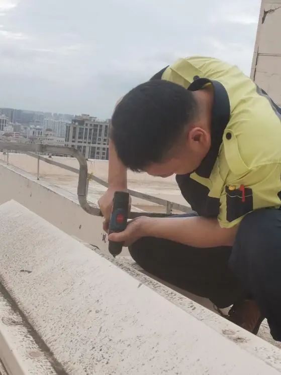 凌锐公司出动巡查538人次,在各看管基地新加固外挂网38处,清理屋顶断枝3处,疏通下水管道32处,处置中汇大厦倾斜避雷针等高坠隐患6处。