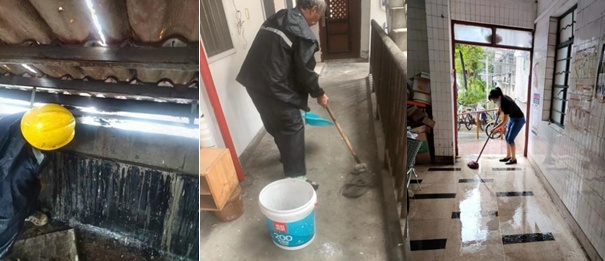 针对此次台风短时降雨量大的特点,工程部组织人员,在易积水小区相关点位,提前开启集水井、安装防汛挡水板、放置防汛沙袋,以应对可能出现的雨水倒灌。公司各项目管理处定时对易积水点位开展巡查,并协助维修人员做好相关点位排水工作。对于因强降雨导致的部分居民房屋漏水问题,工程部组织人员到居民家中勘察并做好相应记录,同时积极跟进落实后续工作。