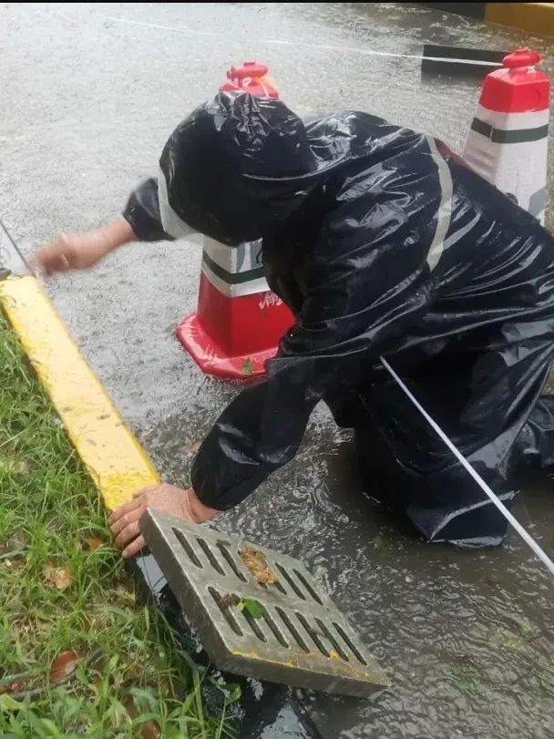 近日,瑞创物业人坚守防汛一线,用行动诠释责任担当。为确保排水设施畅通,防止大风对建筑的损坏,各管理处加强巡查力度,对排水设施设备进行全面排查,同时对水管、下水道、天沟明沟、天台等进水部位进行全面清理,确保排水系统的顺畅运行,通过微信管家号发布预警提示和安全注意事项,提醒业户关闭好窗户,及时清理窗台物品,避免高空坠物。在接到客户反馈情况时,物业工程部人员第一时间前去查看情况,协助处理。路面有树木倒伏影响通行,保安部和清洁部工作人员及时响应,把倒树及断枝暂时搬到路边,避免影响人车通行。