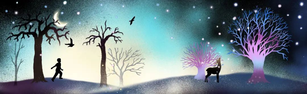 艺术家黄赛峰继苏州河之后,再次与黄浦结缘。他结合光影节“穿越光年”的主题,携手DIGIARTING创作了一个名为《幻境奇旅》的奇幻故事,在内容上运用小男孩、鹿先生等具有童趣、灵性的意向,在画风上借鉴了中国皮影戏的艺术样式,运用了剪影式的绘画风格,给人以静谧感,色彩上又传递一种奇幻、跨时空的视觉效果。值得一提的是整个作品的动画部分是借助AI技术来实现的。
