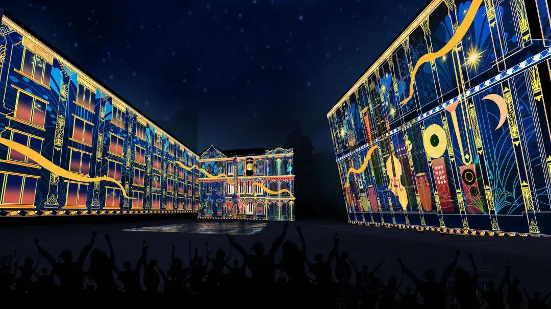 作品将以这座记录着上海百年历史的建筑为载体,通过两个不同篇章的投影秀展示上海的历史深度和现代魅力。“胶片历史叙事”篇章展现不同时期的经典影像,让观众感受时代的深刻烙印,唤起对城市记忆的共鸣。“当代多元文化”篇章生动地描绘国际化大都市的多元文化面貌,利用与上一篇章中呈明显反差的斑斓色彩,展现上海的开放性、包容性和创新精神,同时也点亮整个广场,使之成为文化交流和艺术表达的舞台。观众仿佛穿越时空,感受上海从旧日辉煌到现代繁荣的华美变迁。光影之间,以音乐律动寓意城市发展,连接过去与未来,绽放时代之美。