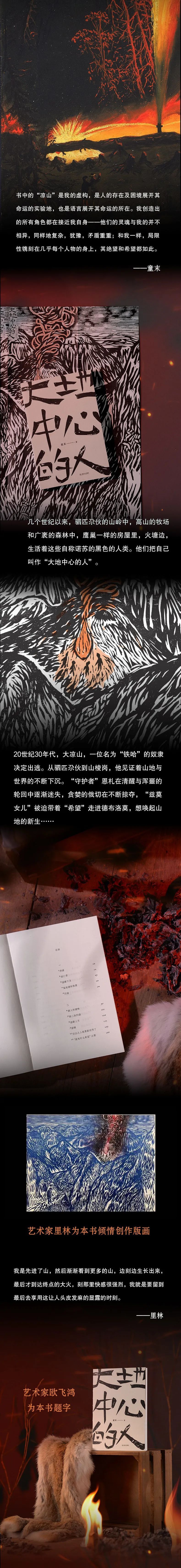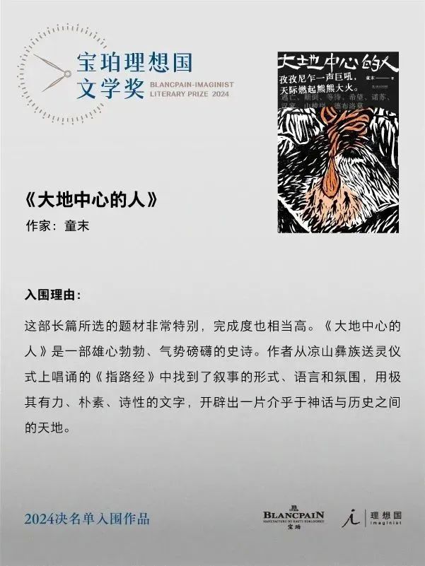 入围理由:这部长篇所选的题材非常特别,完成度也相当高。《大地中心的人》是一部雄心勃勃、气势磅礴的史诗。作者从凉山彝族送灵仪式上唱诵的《指路经》中找到了叙事的形式、语言和氛围,用极其有力、朴素、诗性的文字,开辟出一片介乎于神话与历史之间的天地。