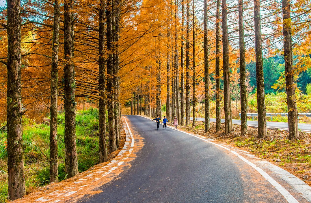 踏上那条如梦似幻的水杉大道,两侧的水杉树巍然耸立,宛如忠诚的卫士,引领着游人步入秋的深处。