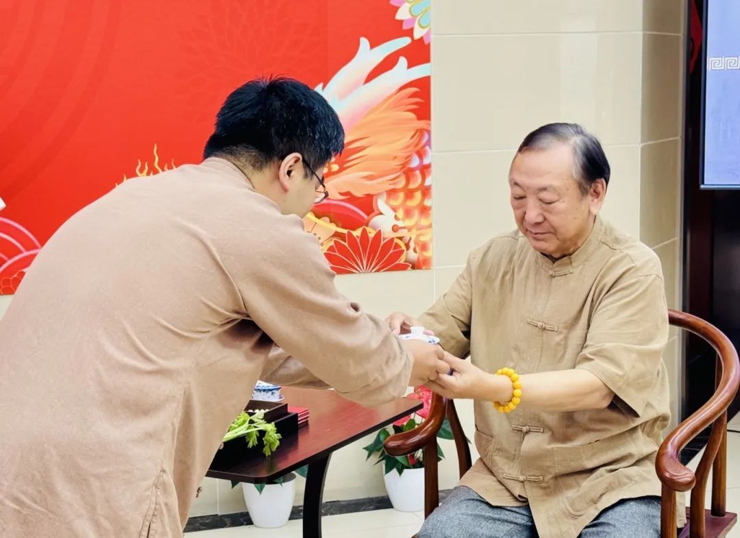 揭牌仪式当天,还举行了收徒拜师仪式。嘉兴路街道社区卫生服务中心的三位青年骨干中医师通过传统的六礼束脩、行拜师礼、呈拜师帖、奉拜师茶等程序,正式成为非遗“东氏针灸”第四代传人、上海中医药大学附属岳阳中西医结合医院终身教授东贵荣的弟子。