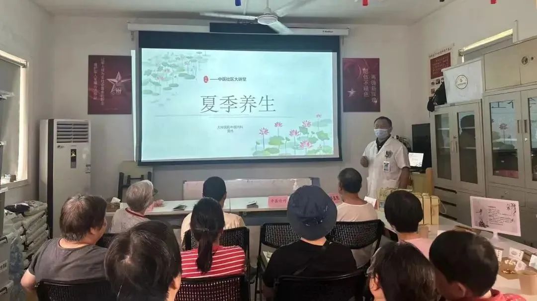 首场中医课堂在“治未病——夏季养生”的讲座中拉开帷幕,医生用通俗易懂的语言传播中医“治未病”理念,传授行之有效的中医养生小妙招,帮助居民日常在家轻松进行自我保健,享受健康生活。“银岁安康,缓解老年人疼痛”“痛风病人如何健康饮食”“治未病话节气”等中医健康知识干货满满,场场人气火爆,吸引众多居民聆听。
