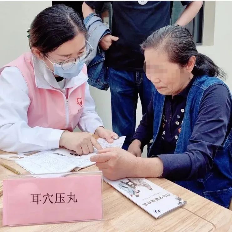 “刚才医生按了几个穴位,有点酸,但是很快就感觉很轻松,按完立刻就舒服多了。”在中医体验专区,居民们排起了长队,耳穴压丸、穴位敷贴、穴位按摩等都是热门项目。医护人员手把手教居民如何找准穴位,如何使用按摩指法、力度等,让群众沉浸式体验了中医技术、学会了“小妙招”。