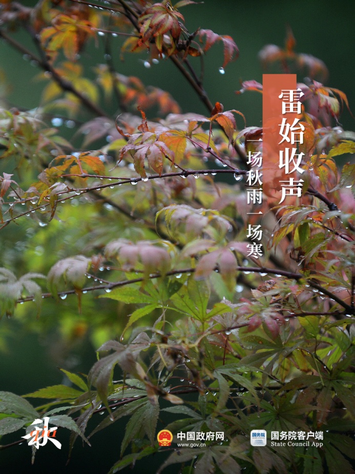 秋分初五日,初候雷始收声。秋分后,雷声便渐渐远去。