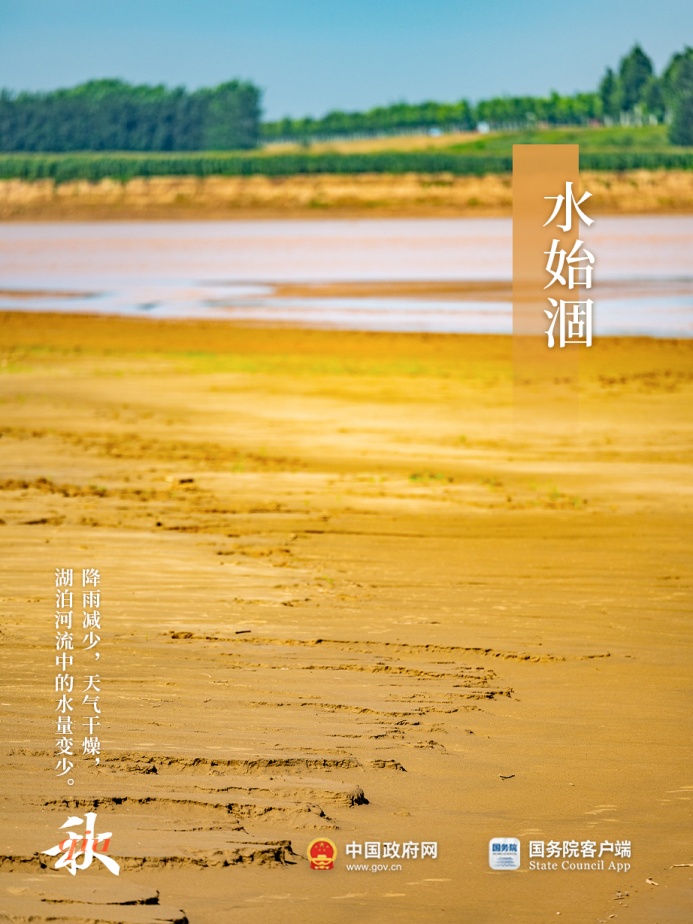 秋分后五日,三候水始涸。降雨减少,天气干燥,湖泊河流中水量变少。