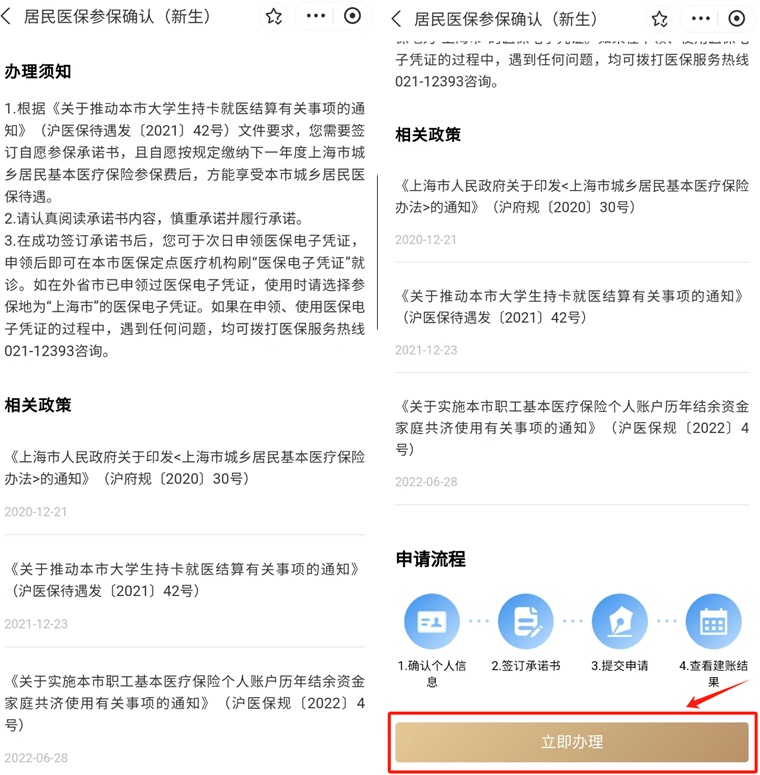 5.建立居民医保账户后,可于次日前往“随申办”申领医保电子凭证。申领后即可在本市医保定点医疗机构刷“医保电子凭证”就诊,享受自确认日期的次日至2024年12月31日期间的就医医保待遇。
