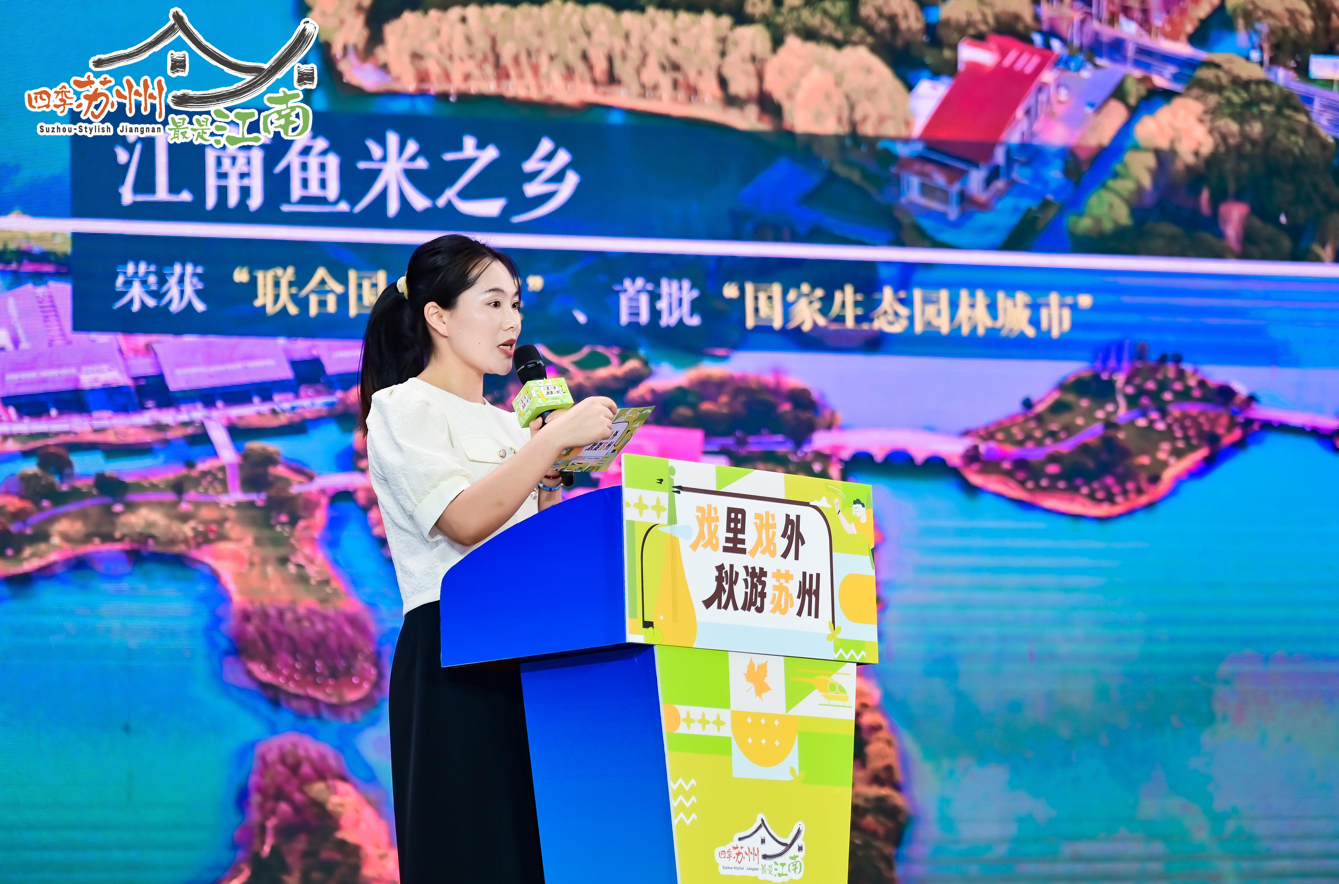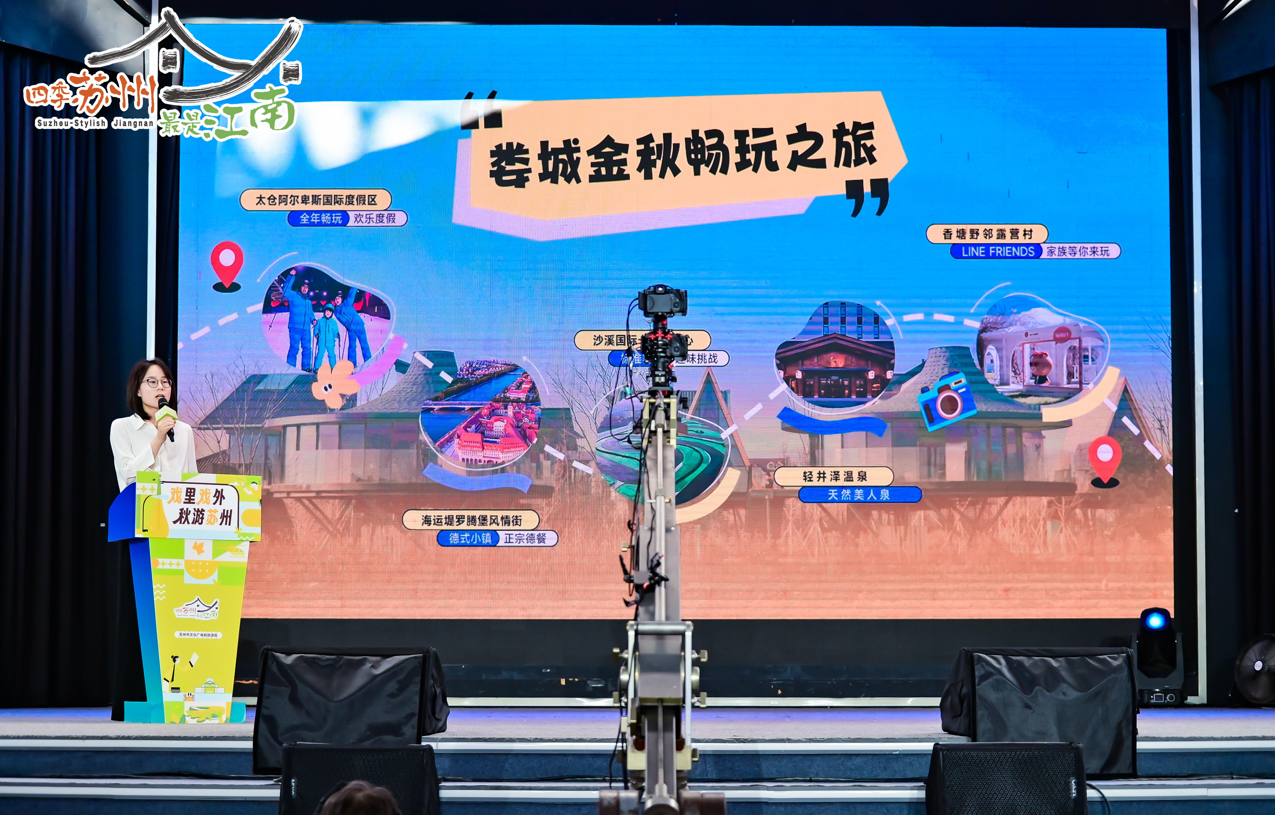 推广活动上,苏州全市十个县市区齐上阵,奉上秋游苏州的最全指南:地处江尾海头的张家港市,不仅散发着水乡的慵懒气质,更兼具江海的雄浑澎湃;山水相依的常熟市推出全域旅游护照打卡集章活动,沿着推荐线路,解锁江南福地的人文美景;“上海下一站”太仓市邀请游客享受畅玩冰雪的乐趣,品味双凤羊肉的暖意;在秋意渐浓的昆山市,坐拥古镇听曲音,骑行绿道踏碧水,共赏皓月品霓虹,成为游客不容错失的绝佳体验;吴江区代表带来寻忆江南、时令风味、乡野自然、潮趣玩法等特色旅游主题产品,发出“乐游吴江”的盛情邀约;吴中区代表携新近入选的“2024长三角健康养老目的地”太湖旅游区,传播康养旅居的生活方式;阳澄湖畔的相城区代表则推荐了蟹逅秋味、酣赏秋色、摇落秋实、酷爽秋营、拾趣秋集等七大文旅产品,又添“首席蟹乡”新名片;姑苏区代表将“食四时之鲜、居园林之美、听昆曲之雅、用苏工之美”的苏式生活,尽数展现;苏州工业园区代表勾勒出城市与湖泊的时代际遇,与广大游客情定金鸡湖;苏州高新区则拥有狮山市集、文博逛展、登高徒步、乐园狂欢等业态玩法,刷新游客的文旅消费体验。