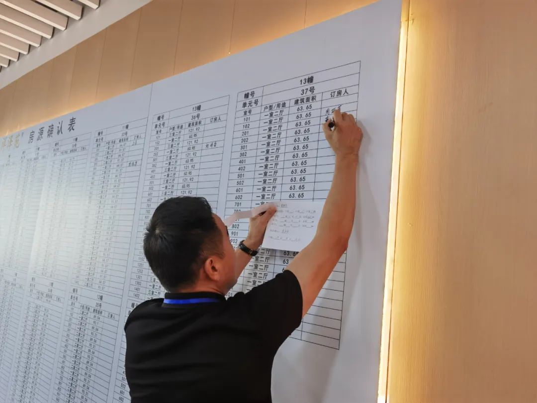 现场被装扮得颇为温馨,居民们在小区规划图前驻足讨论,研究着每一栋楼的位置和房型。几乎每家都是老老少少全家一起面对着激动人心的时刻,作为孙子的卞立群代全家抽房,他说:“拿到了3楼的房子,挺开心的。”徐佳怡与母亲也抽到了心仪的楼层,笑意盈盈。